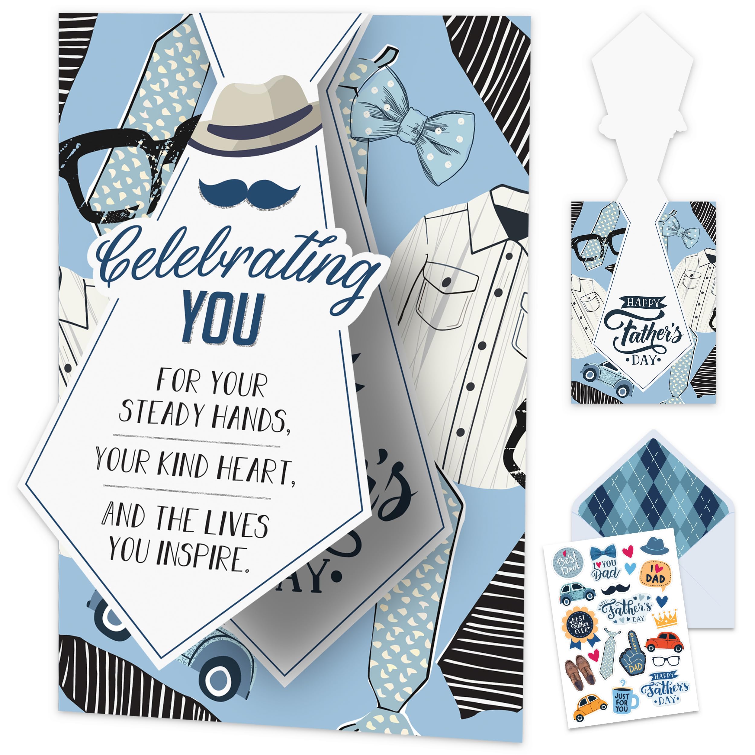 Decorably Glittery 5x7in Handmade Individual Happy Fathers Day Card for Dad with Liftable Tie Cutout, Textured Father's Day Card for Dad Set with|Office Supplies