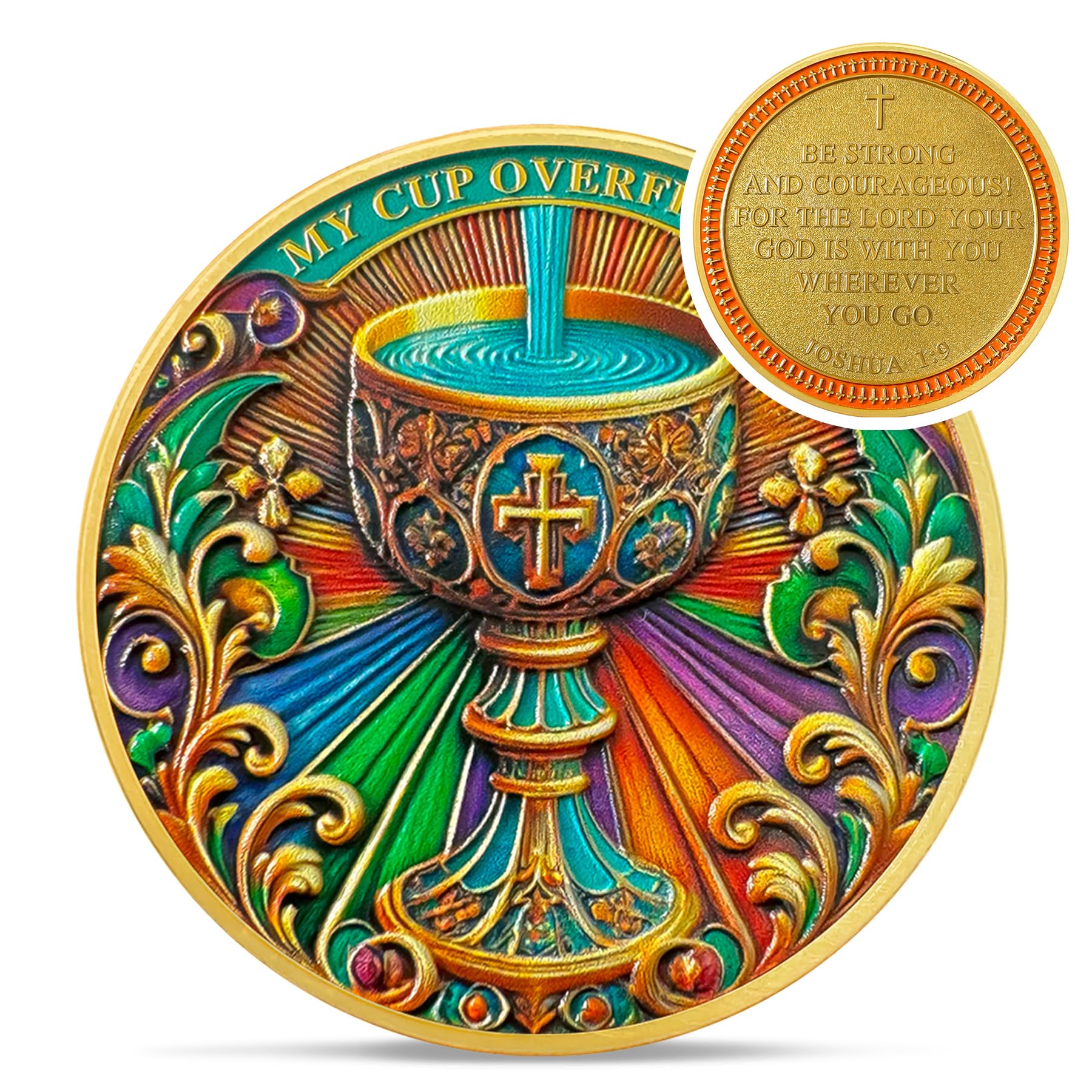 Colorful Holy Grail Christian Challenge Coin - Joshua 1:9 Jesus Religious Token - Inspirational Art God Pocket Bible Verses Chip for Study - Good Luck|Office Supplies