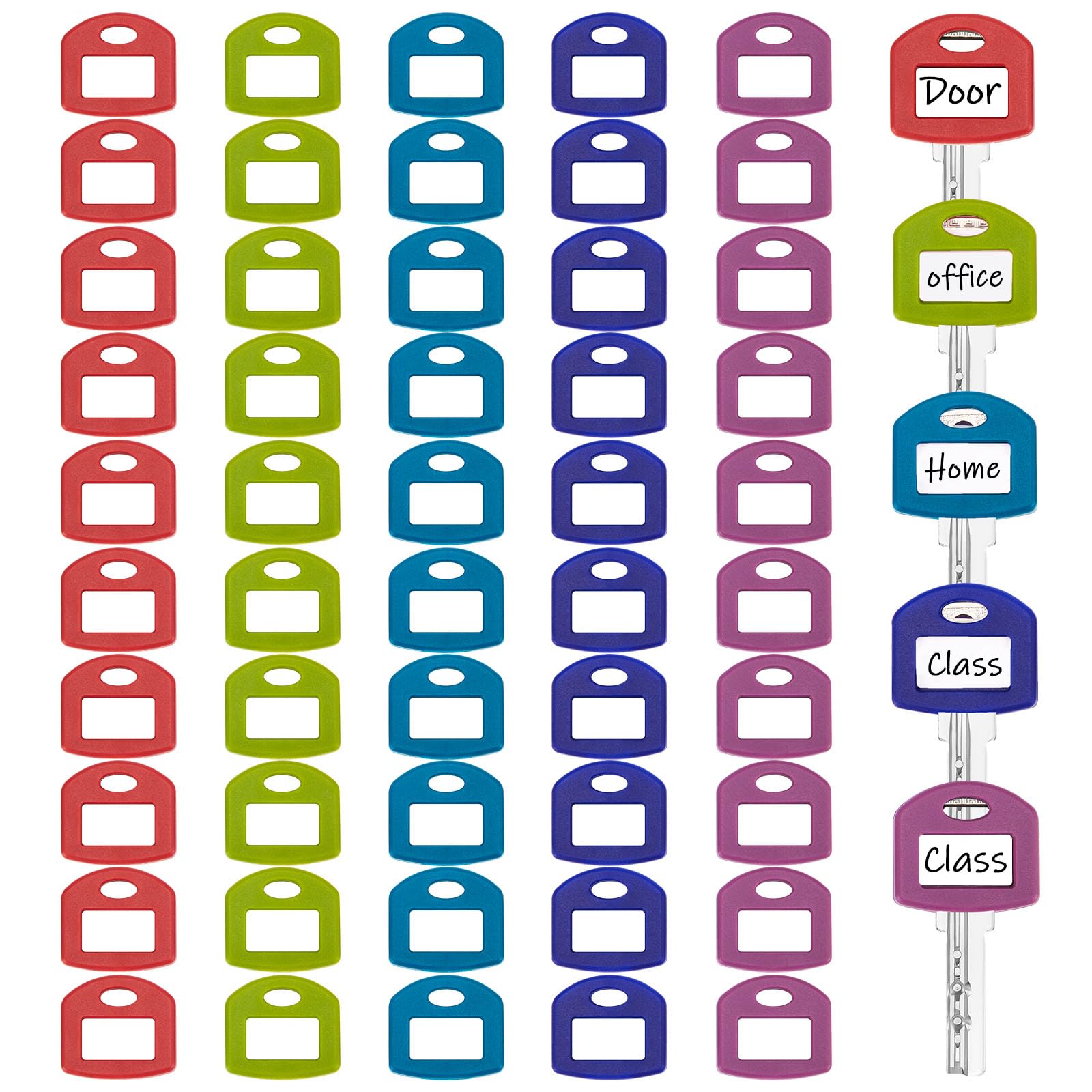 Blulu 50 Pieces Colored Key Tags with Labels 1 Inch Cute Silicone Key Covers Tag with Self Adhesive Stickers for House Classification Organization(|Office Supplies