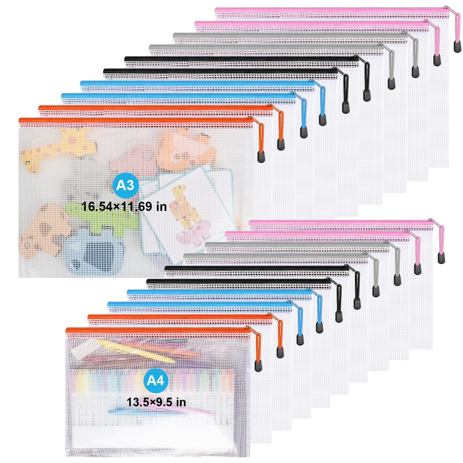 Mesh Zipper Pouch Bags,Zipper Pouches,Mesh Zipper Bags for Organizing,Storage Bags for Office Supplies,Puzzle & Board Game Storage. (A3(10 Pcs)+A4(10|Office Supplies