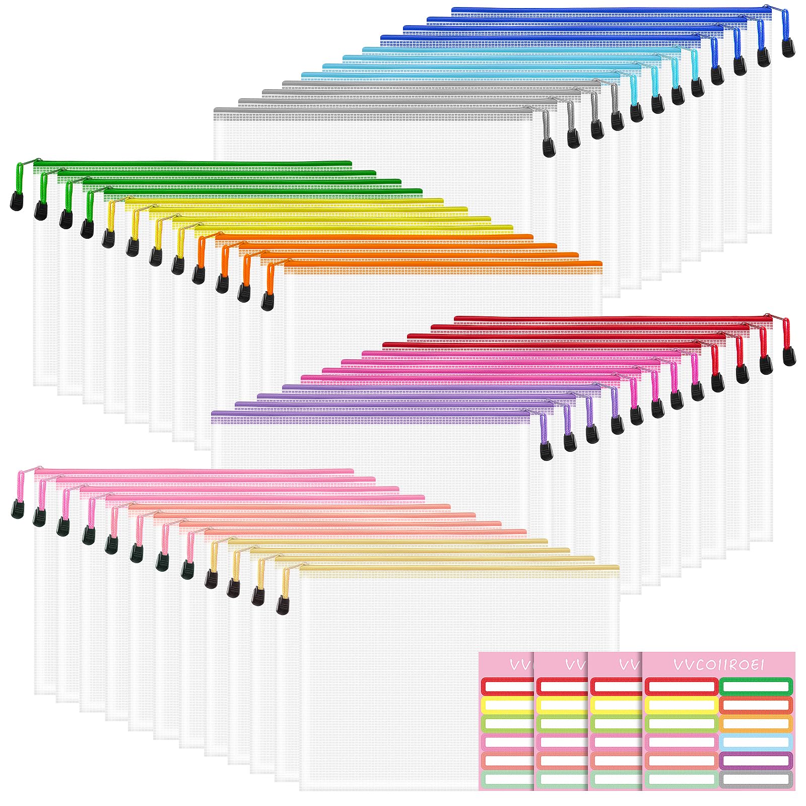 VVCOIIROEI 48pcs Zipper Pouches for Organizing, A4 Waterproof Bags, Plastic Mesh Zipper Bags, Storage Bags for Toys, Document Bag, Classroom|Office Supplies