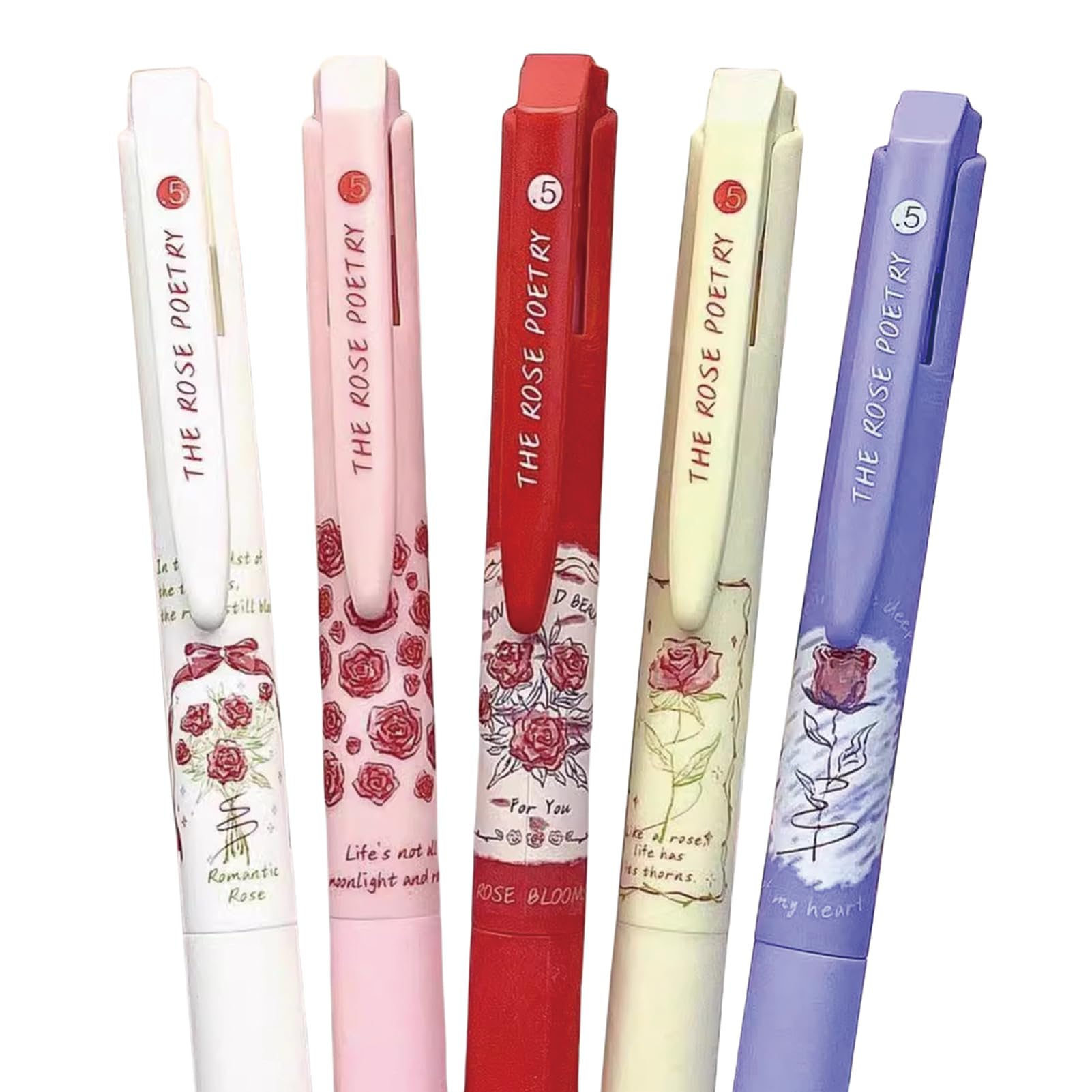 MOZXIRZ 5 Pcs Gel Ink Pens Flower Retractable Pens 0.5mm Black Ink Gel Pen Cute Rose Pens Aesthetic Pen for Women Girls Office School Supplies (5Pcs|Office Supplies