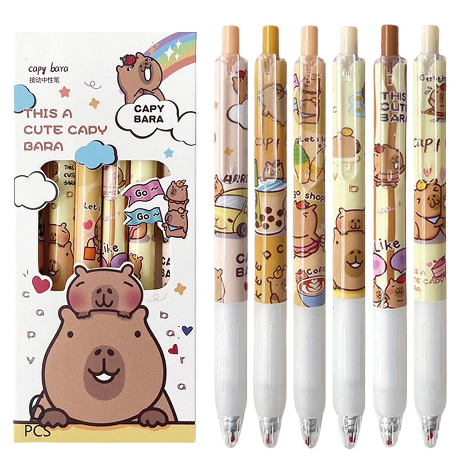 6 Pcs Capybala Retractable Cute Cartoon Capybara Pens 0.5mm Black Ink Soft Grip Gel Ink Aesthetic Office School Supplies for Girls Boys Women Men|Office Supplies