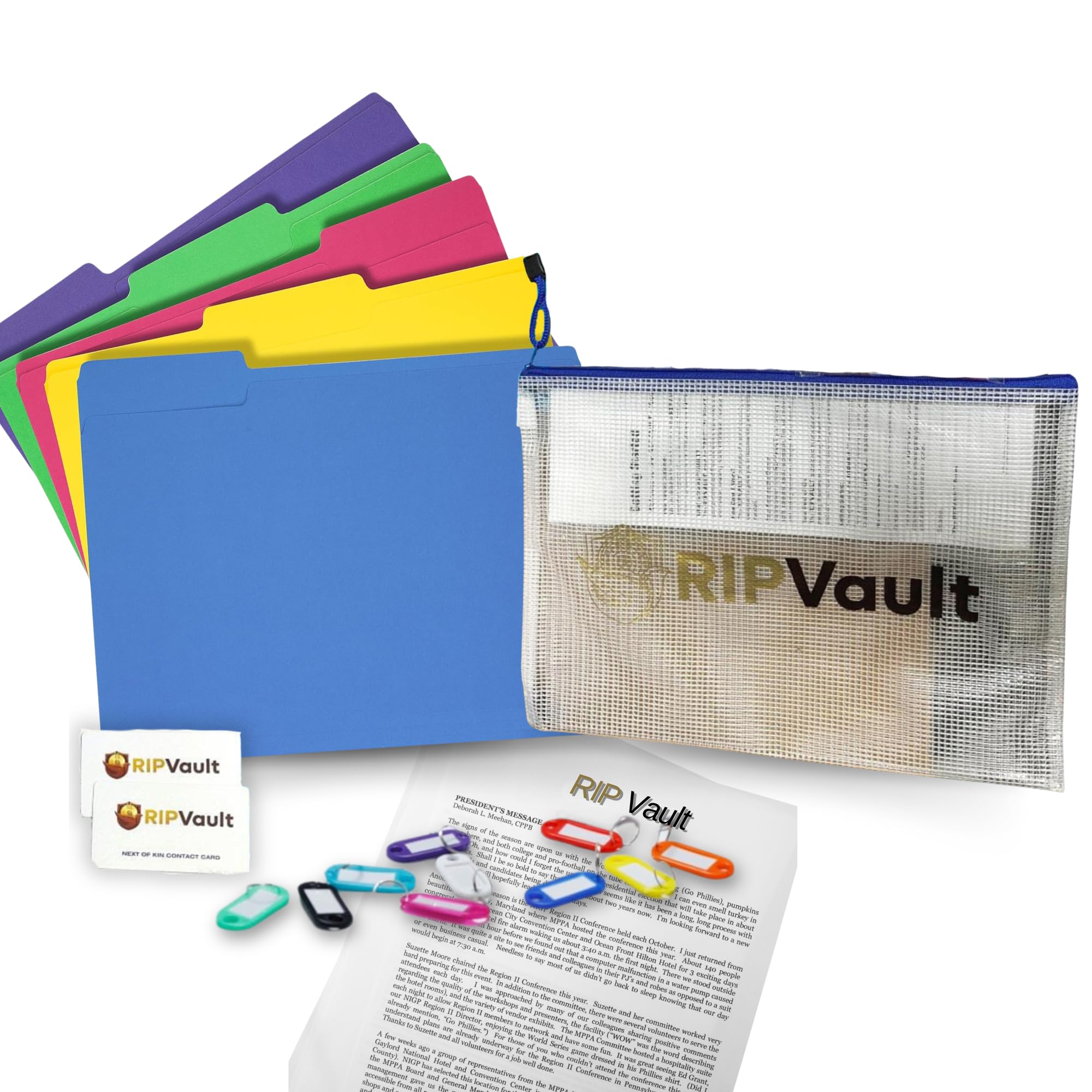 Ripvault Estate & Personal Document Organizer Kit - Included 1 Document Bag (Zipper Bag), 2 Next of Kin Cards, 8 Key Tags | Complete Set of File|Office Supplies