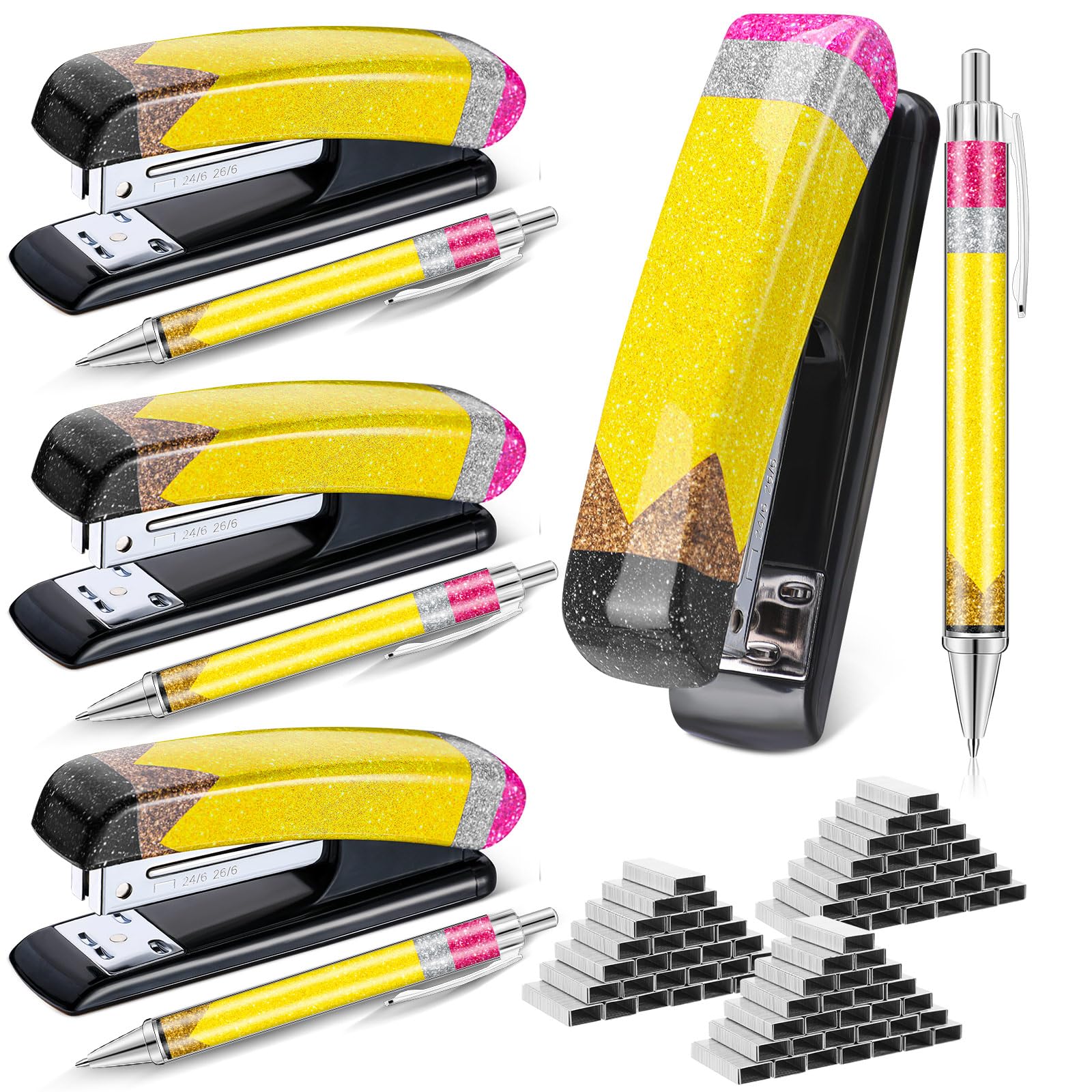 Teacher Appreciation Gift Set Glitter Pencil Stapler Ballpoint Pens Office Supplies Desk Accessories Teacher Stapler with Staples for 2026 Graduation|Office Supplies
