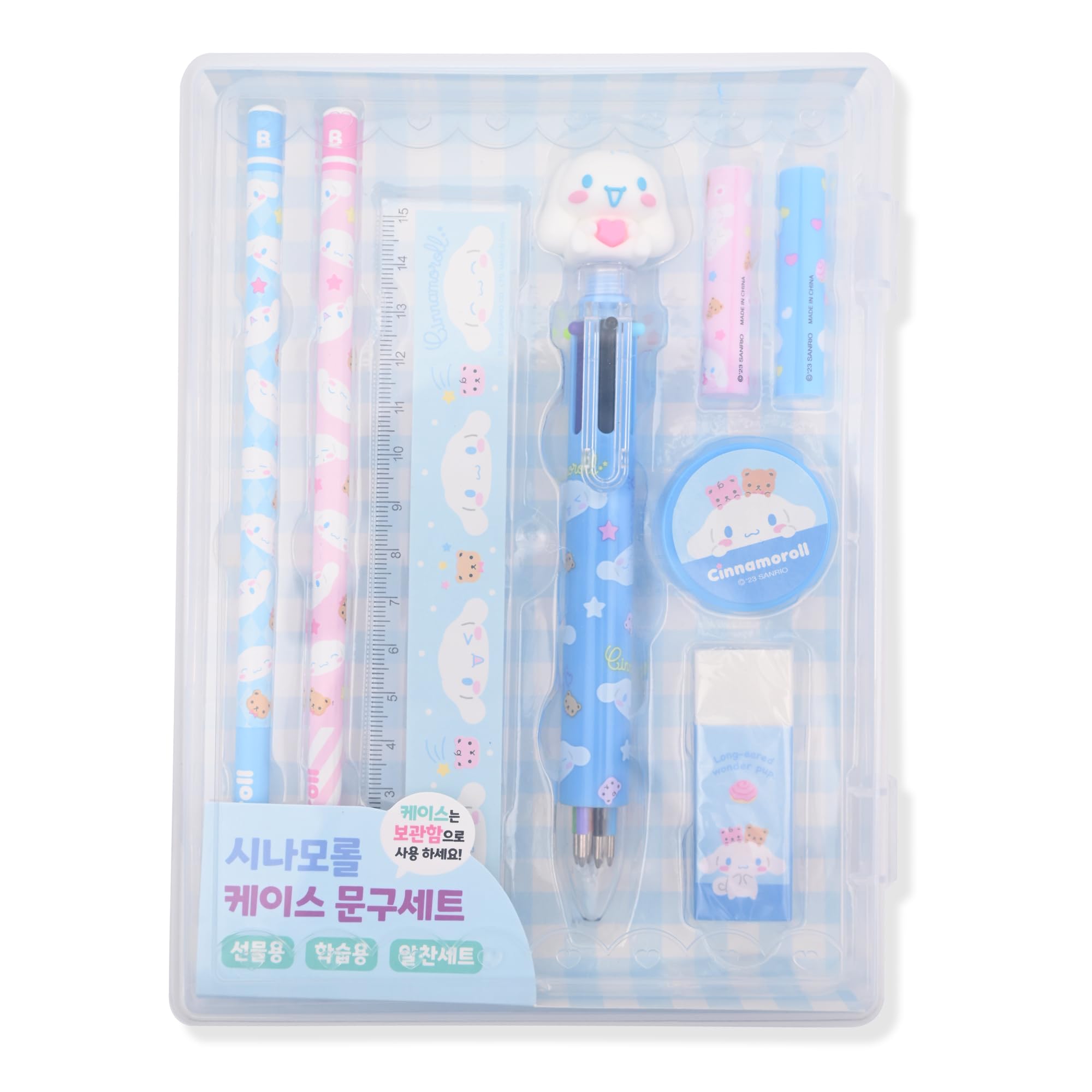 MENBLY Cute Stationery Set with Reusable Organizer Case - Includes 2 Pencil, 2 Pencil Caps, Ruler, Multicolor Pen, Sharpener, & Eraser, Portable|Office Supplies