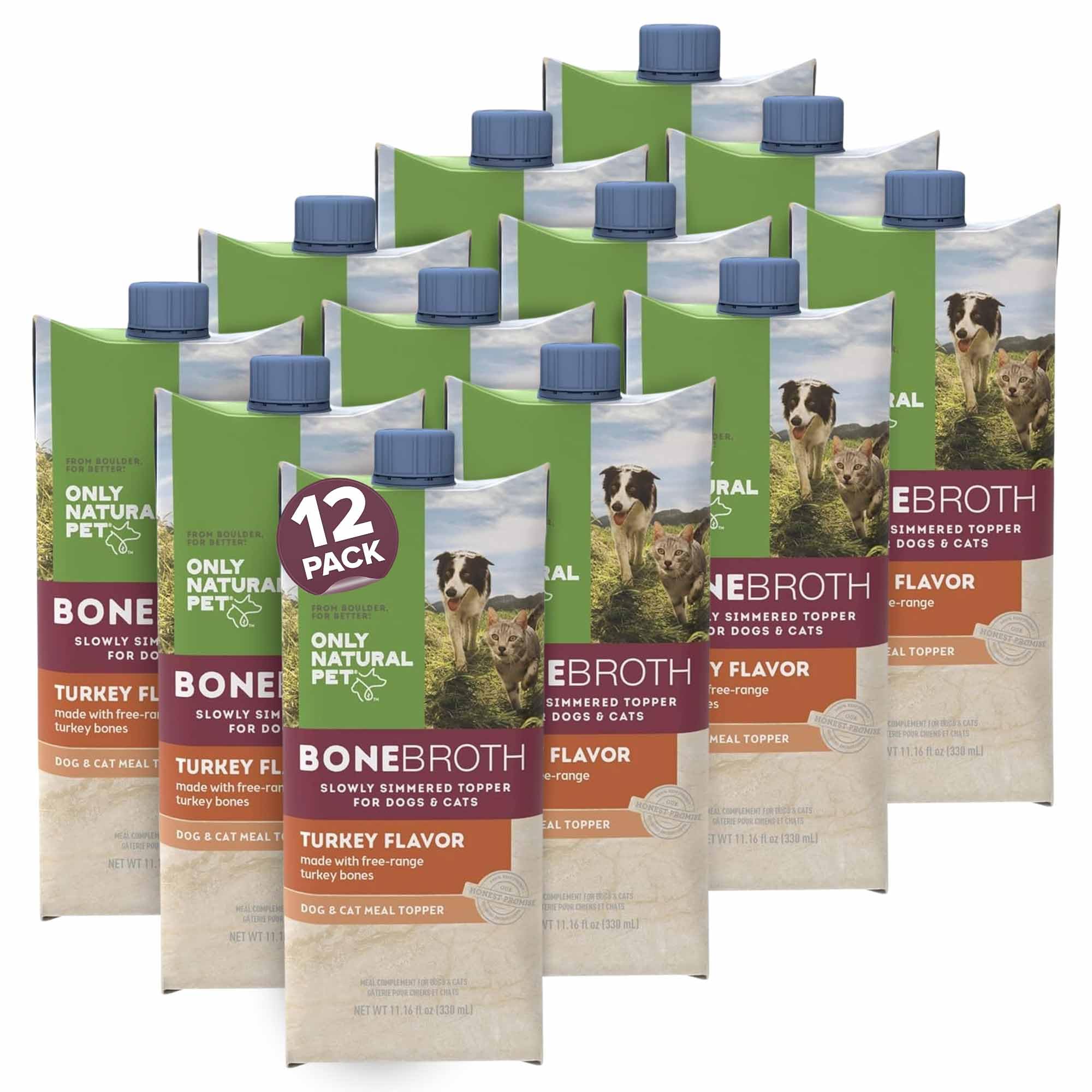 Only Natural Pet Bone Broth Turkey Flavor Dog & Cat Meal Topper, 100% Human-Grade Slow-Simmered, Free-Range for Dry Food or to Hydrate Dehydrated Food|Pet Supplies