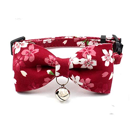 PETFAVORITES Breakaway Bowtie Cat Collar with Bell - Flower Kitten Bow Tie Kitty Puppy Clothes Accessories, Adjustable and Handmade.(Red Sakura, Size|Pet Supplies