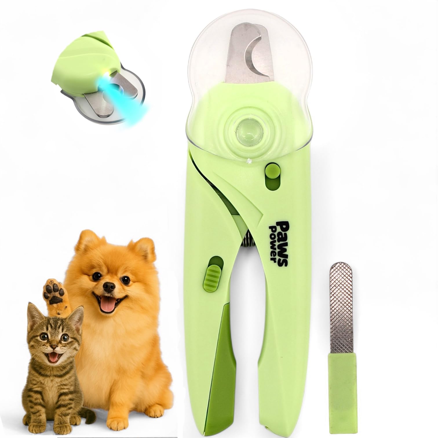 Paws Power Cat Nail Clipper & Small Dog Nail Clippers with LED Light - Illuminates Nails & Bloodline for Safe, Easy Trimming - Extra Sharp, Avoid|Pet Supplies