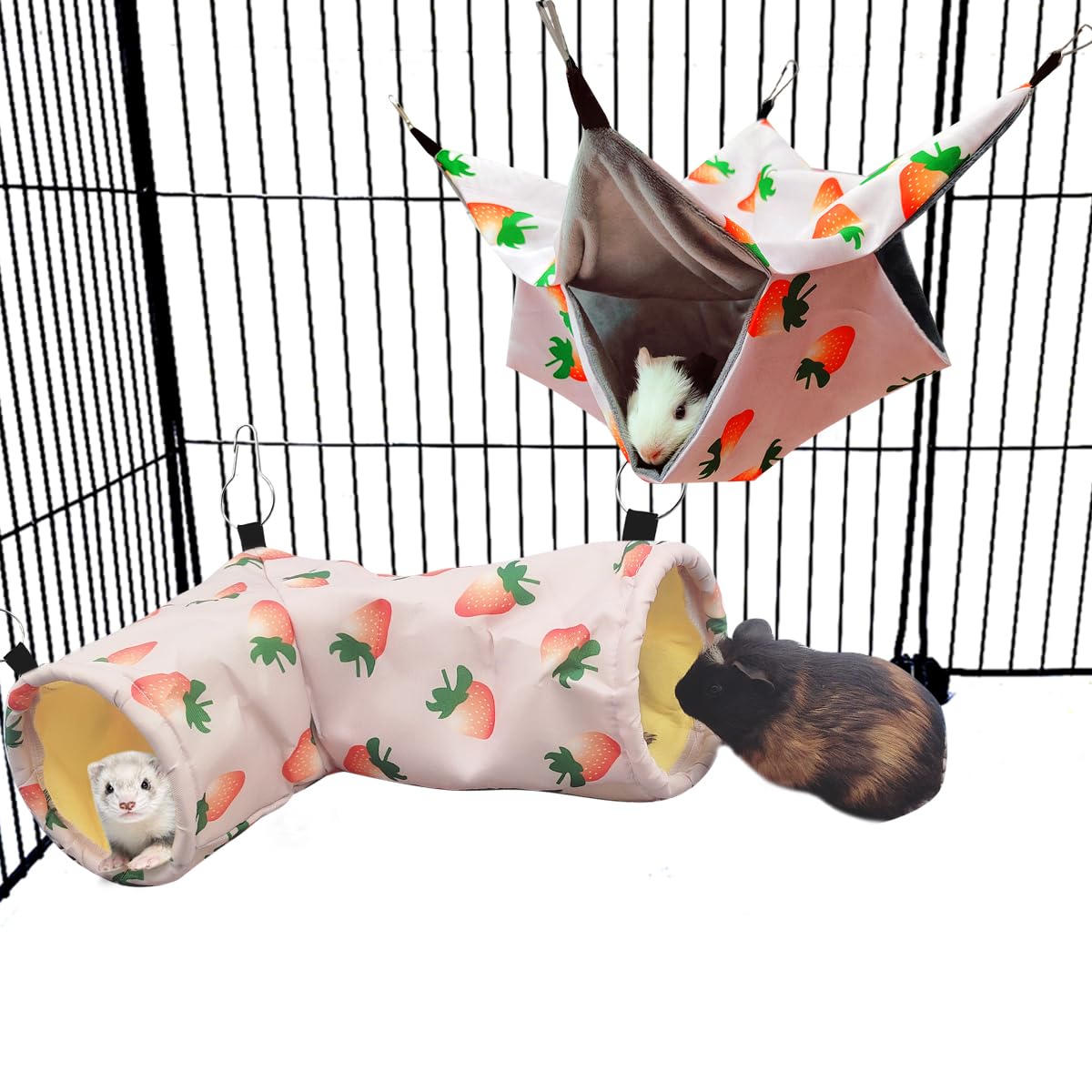 Large Caliber Guinea Pig & Rat Tunnel Hideout & Hammock, Corner Hideout Toy for Guinea Pig, Ferret, Hedgehog & Piggy to Hide and Shuttle (2. Hammock&|Pet Supplies