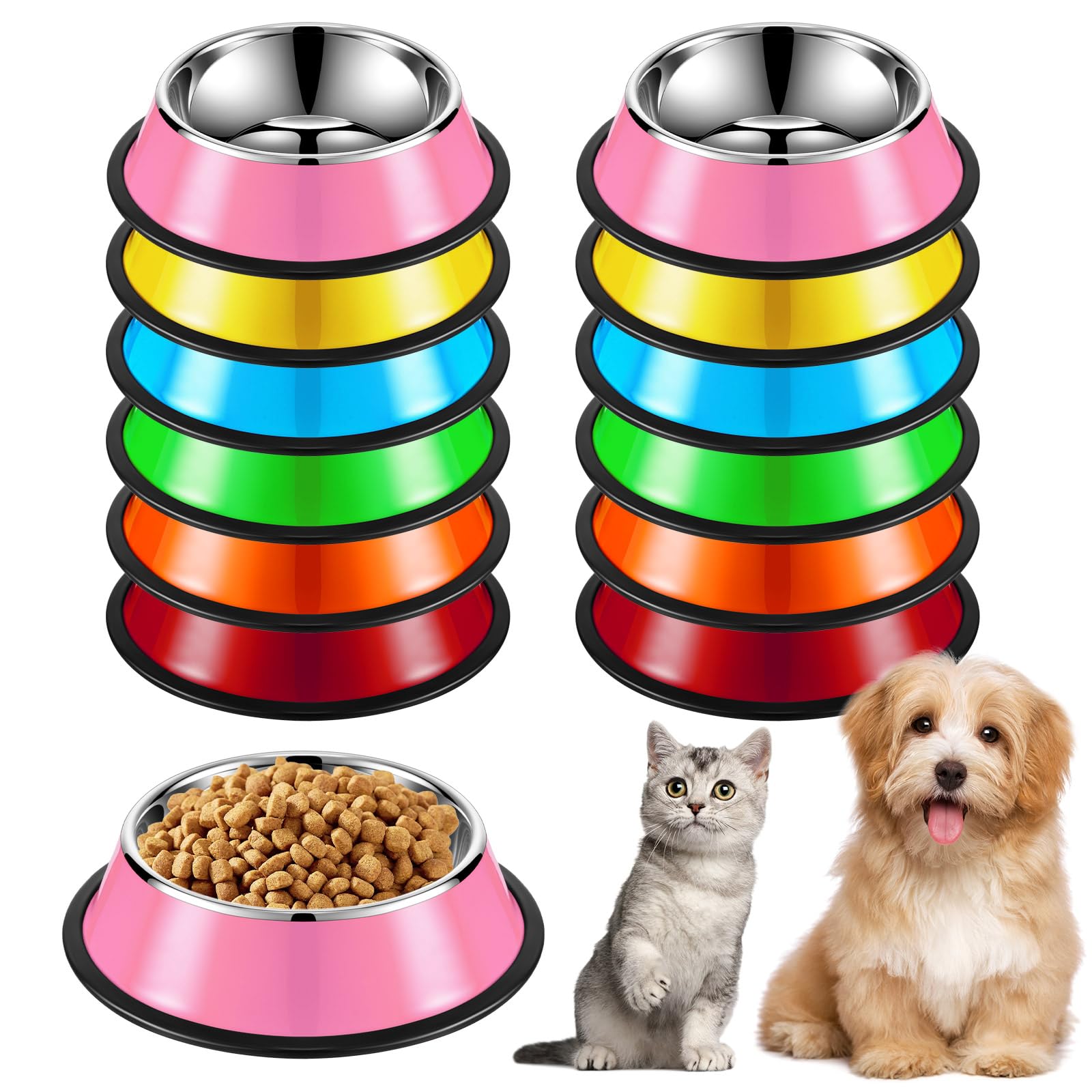 Roshtia 12 Pcs Stainless Steel Cat Bowls 6. 4 in 7 oz Metal Food Bowls for Cat Small Dogs Stackable Pet Dishes for Puppy Colorful Pets Feeder Bowl|Pet Supplies