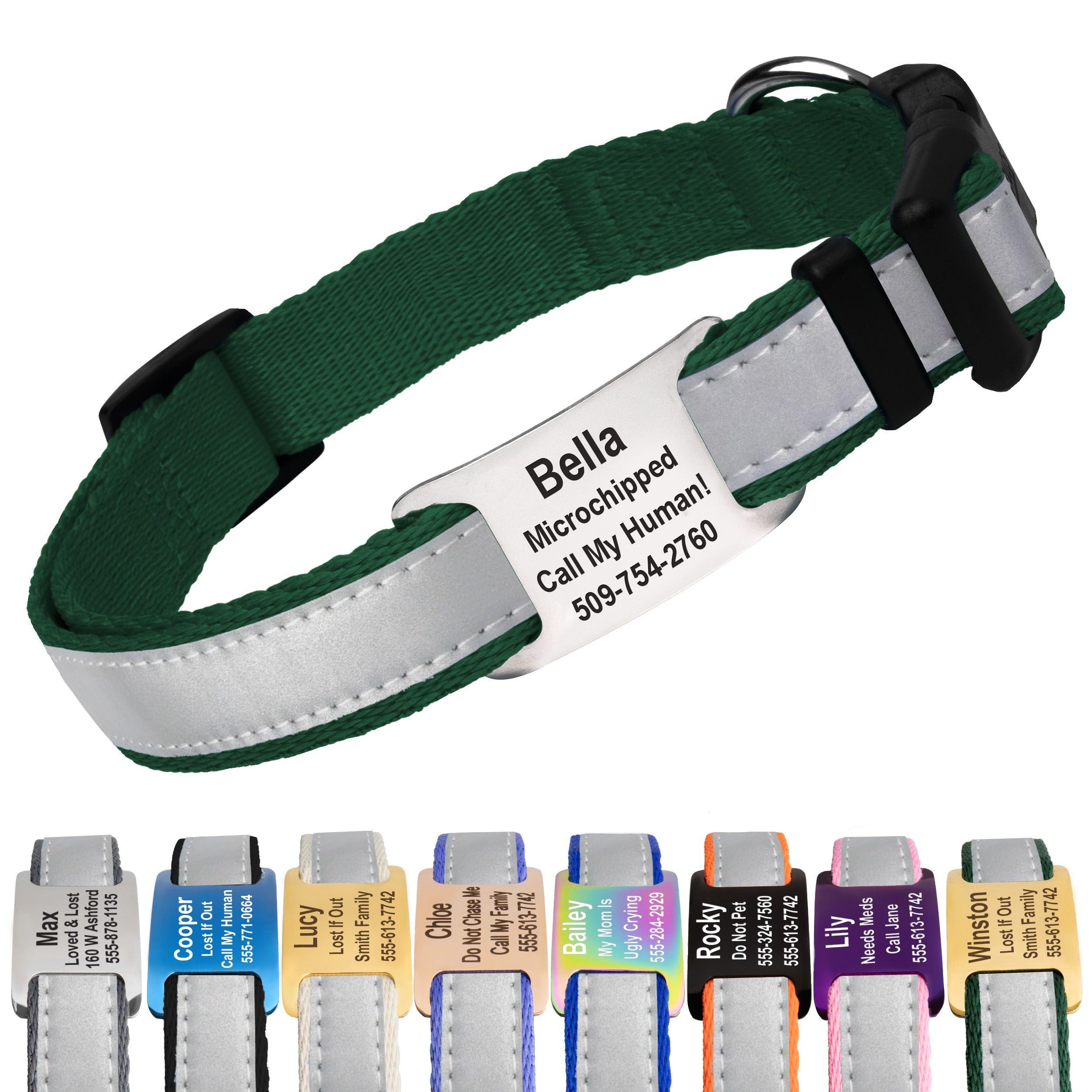 GoTags Reflective Personalized Dog Collar with Nameplate, Adjustable Dog Collar with Custom Engraved Steel Slide On Pet ID Tag, Silent, No Noise Dog|Pet Supplies