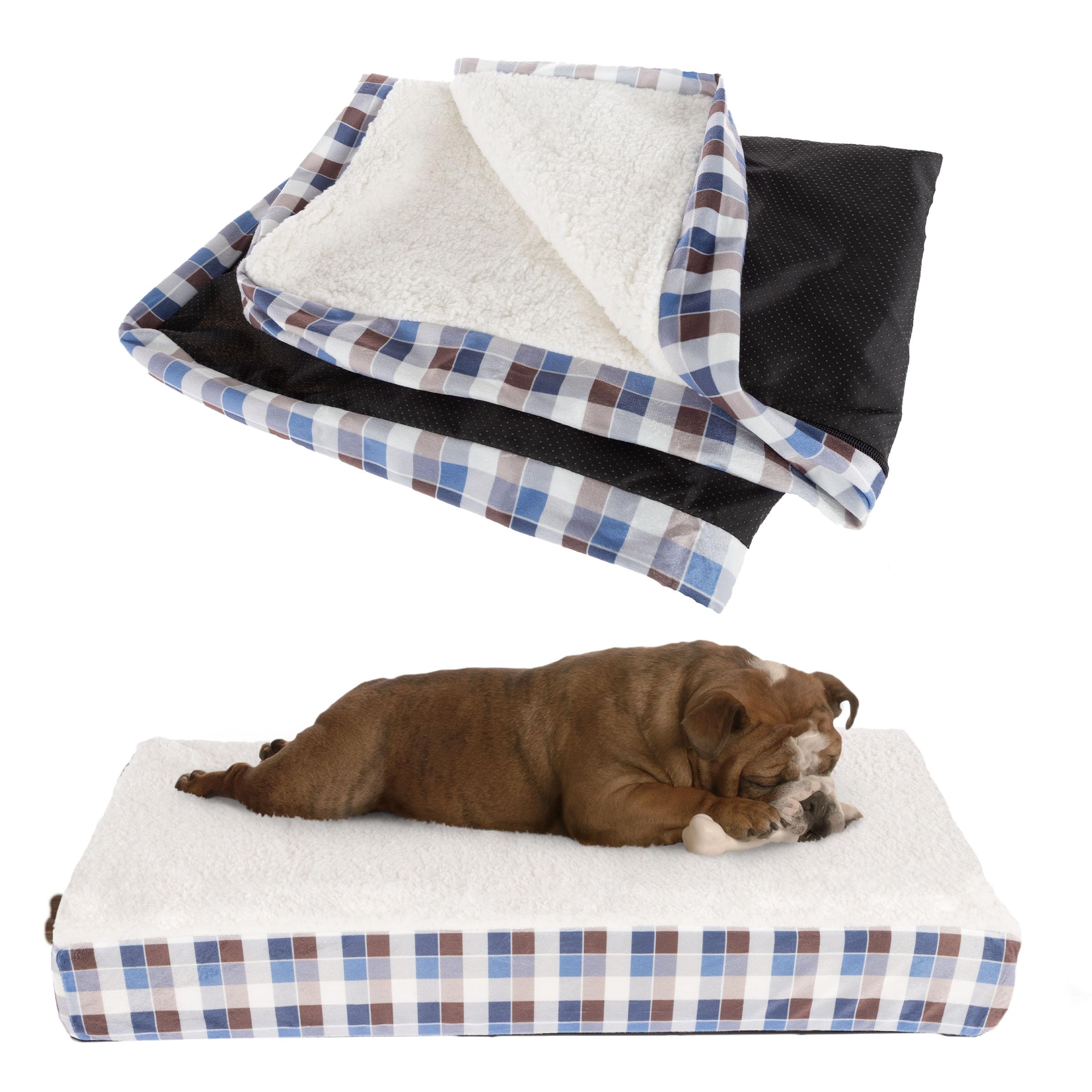Dog Bed Replacement Cover ? Medium Pet Duvet with Sherpa Top, Non-Slip Bottom - Dog Bed Washable Removable Cover by PETMAKER (Brown/Blue Plaid)|Pet Supplies