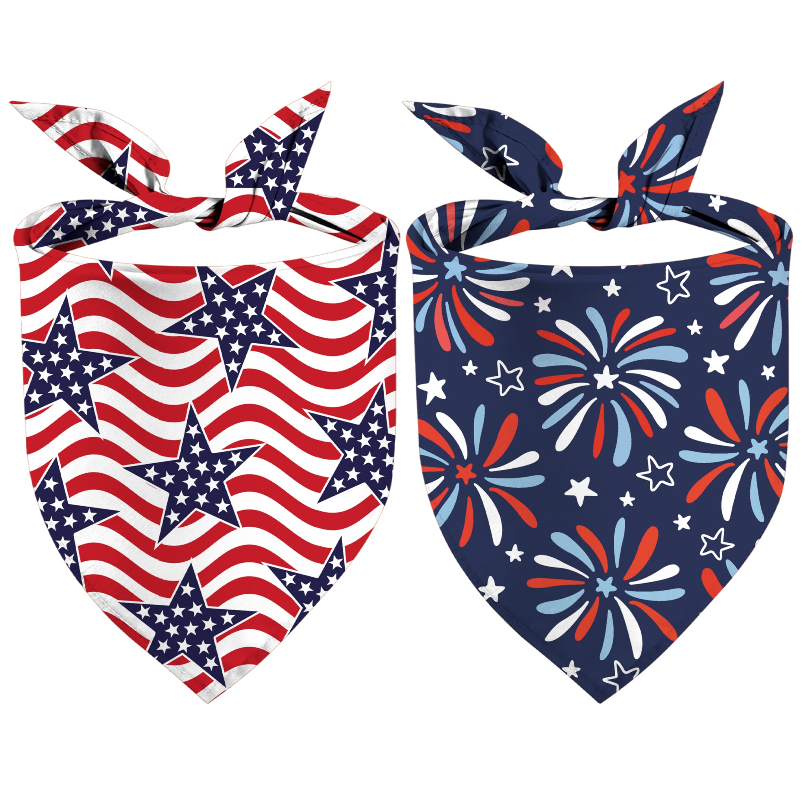 4th of July Dog Bandanas 2 Pack, Stars Blue Red Fireworks Print Scarfs for Boy and Girl, Patriotic Pet Scarves for Independence Day Bandanas Bulk for|Pet Supplies