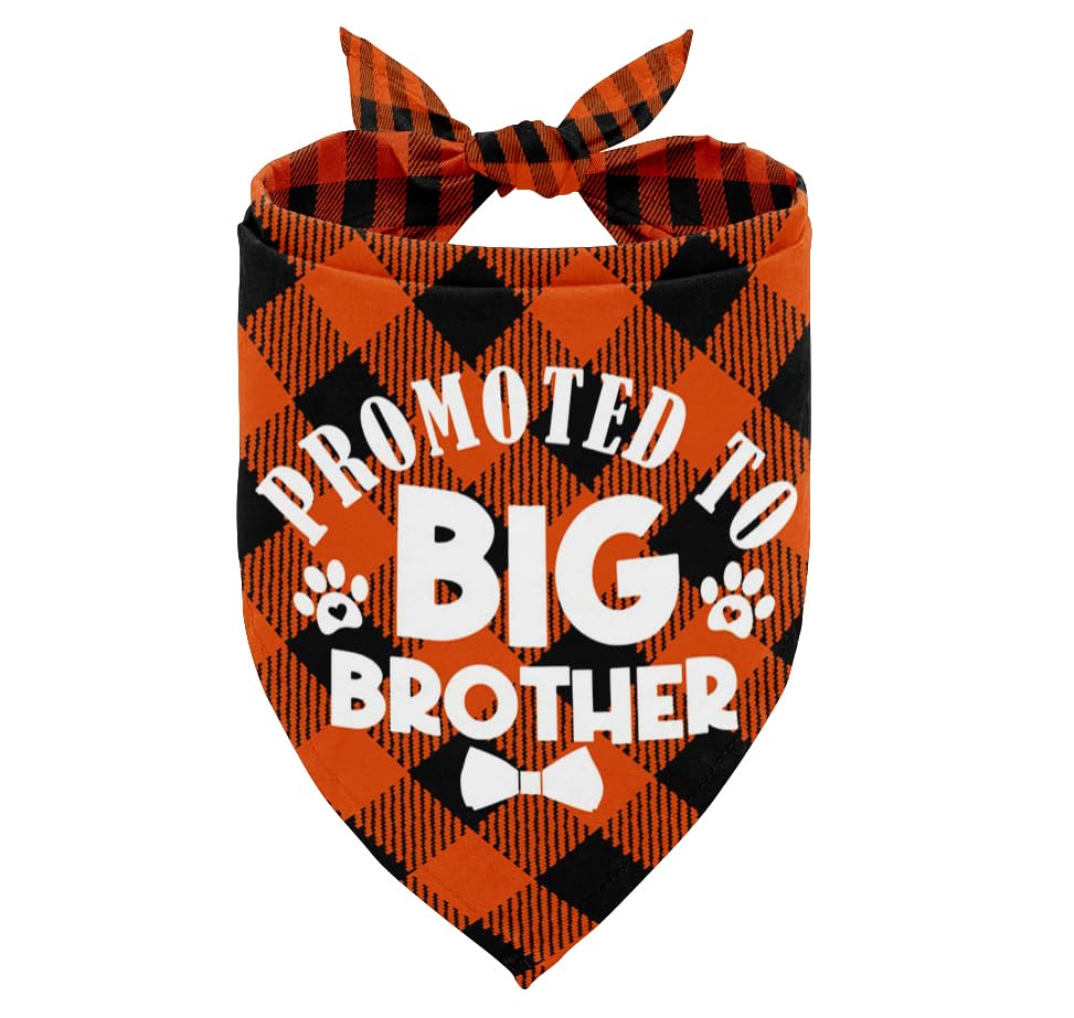 Dog Bandana, Promoted to Big Brother, Dogs Muffler Classical White Printing, Doggy Muffler Pet Scarf, Pet Baby Announcement Plaid Scarf Gender Reveal|Pet Supplies