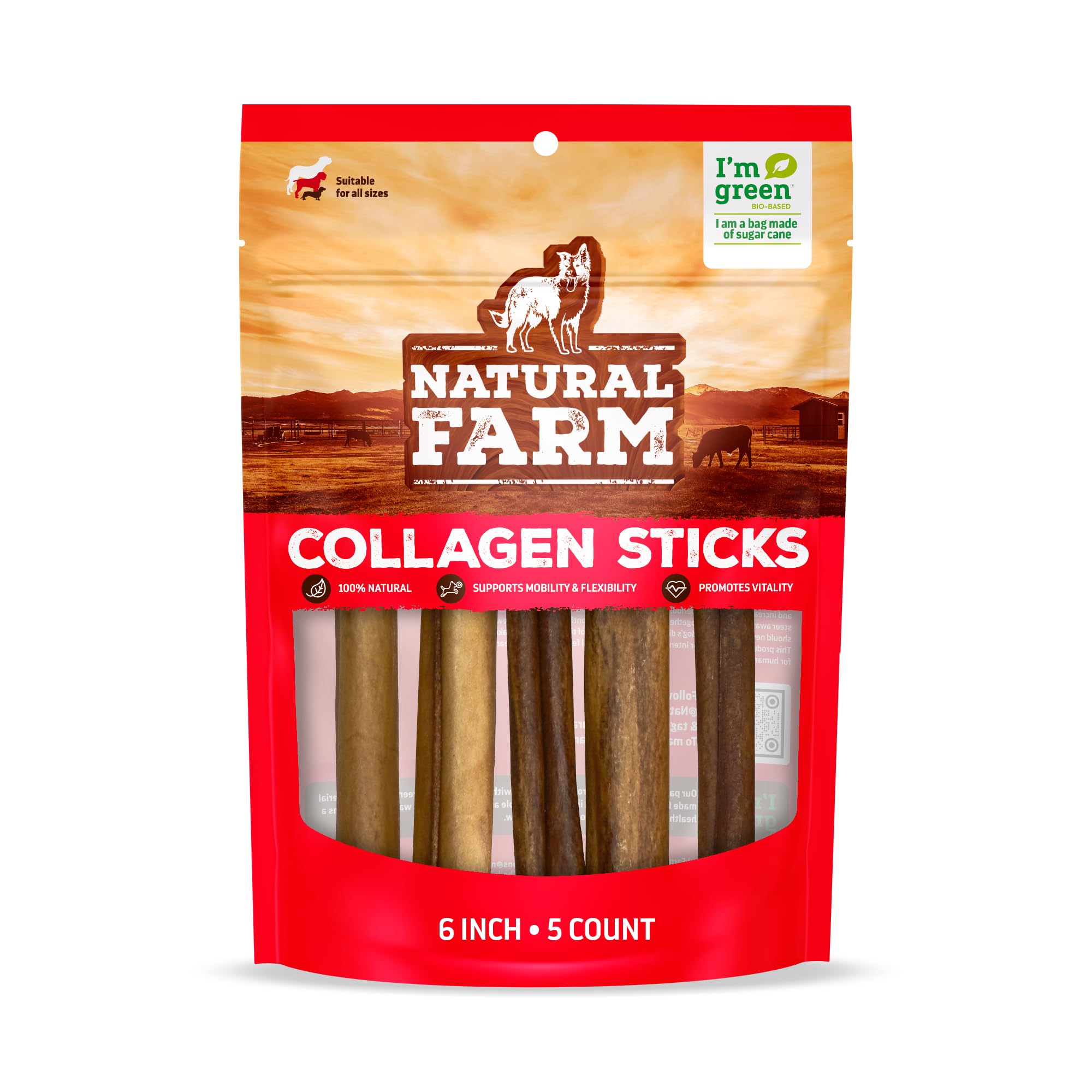 Natural Farm Collagen Sticks 6-Inch Dog Chews - Odor-Free, 95% Natural Collagen Supports Healthy Joints, Skin & Coat - Small, Medium Dogs – Lasts 20%|Pet Supplies