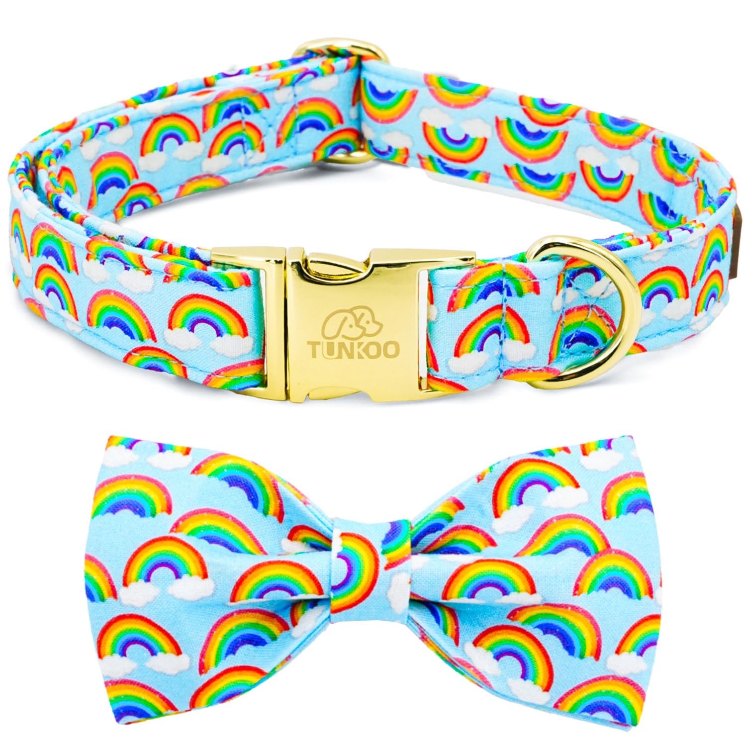 Tunkoo Pride Dog Collar with Rainbow Bow Tie for LGBTQ, Metal Buckle Pet Collar Adjustable Cotton Collar for Small Medium Large Boys Girls Dogs, M|Pet Supplies