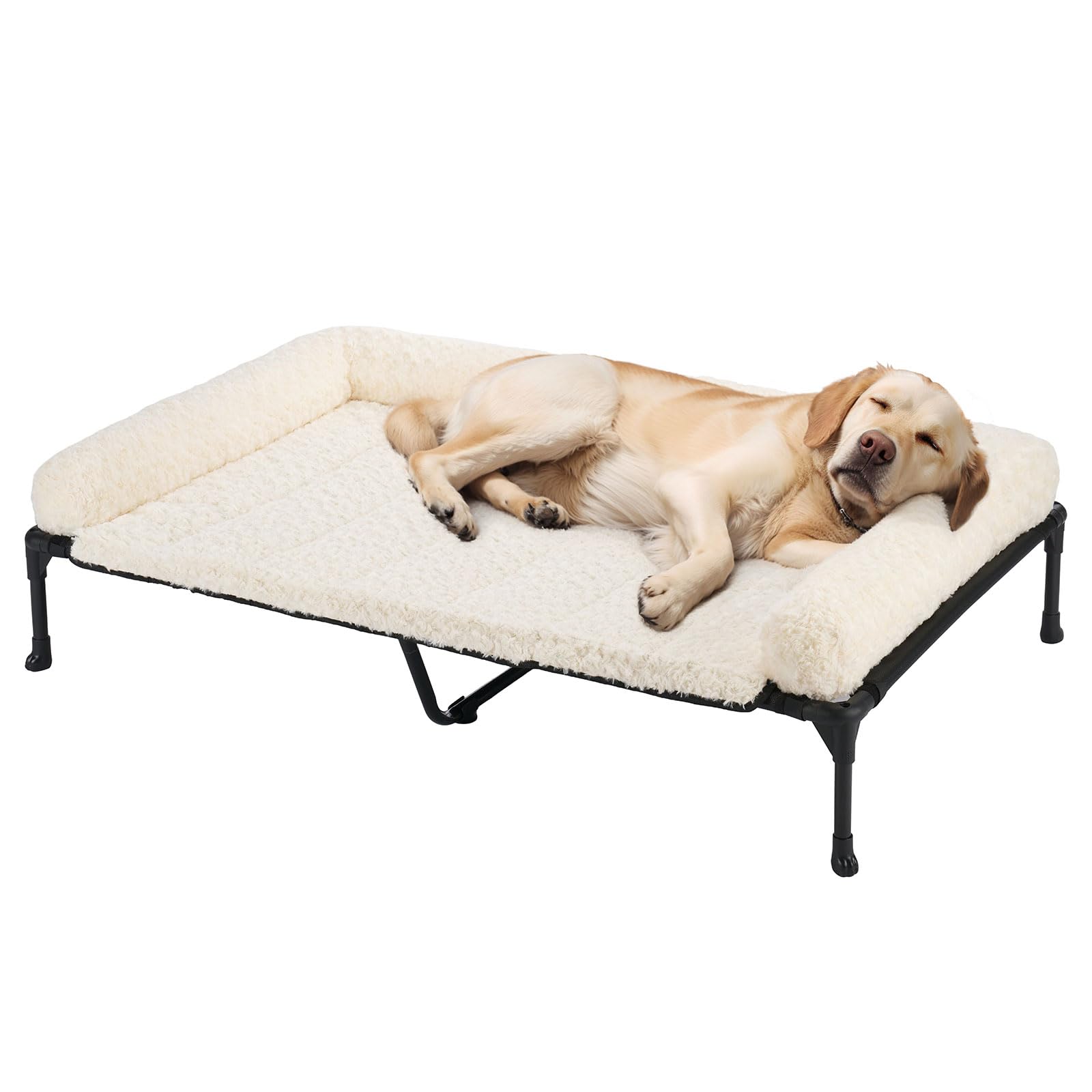 Veehoo Orthopedic Elevated Dog Bed Add Removable Deluxe Rose Plush Bolster Cushion Mat, 47" x 29" Washable Dog Couch Bed, Raised Pet Cot with|Pet Supplies