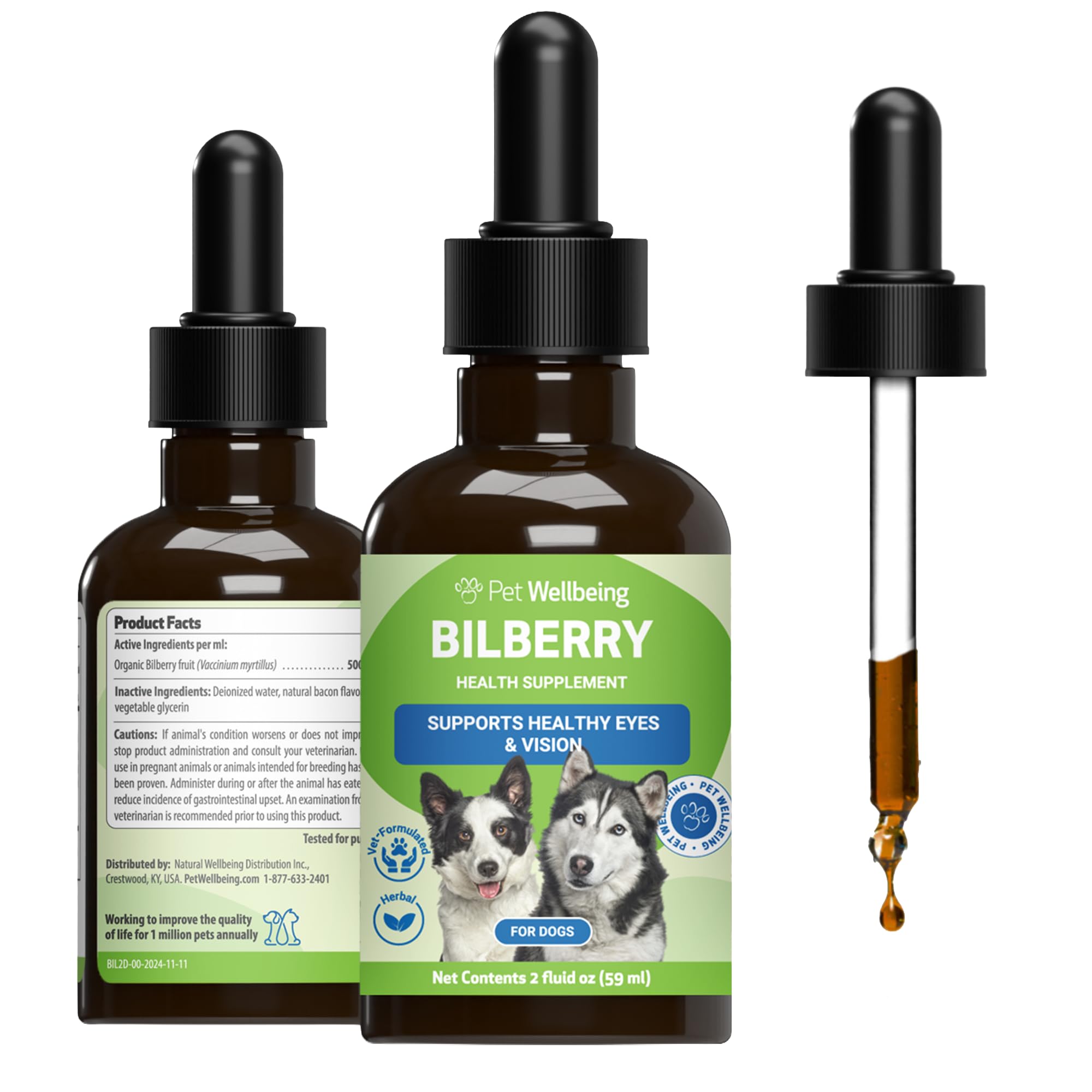 Pet Wellbeing Bilberry for Dogs - Eye & Vision Support with Antioxidants, Capillary Health, Retinal Support - NASC Certified & Vet-Formulated - 2 oz|Pet Supplies