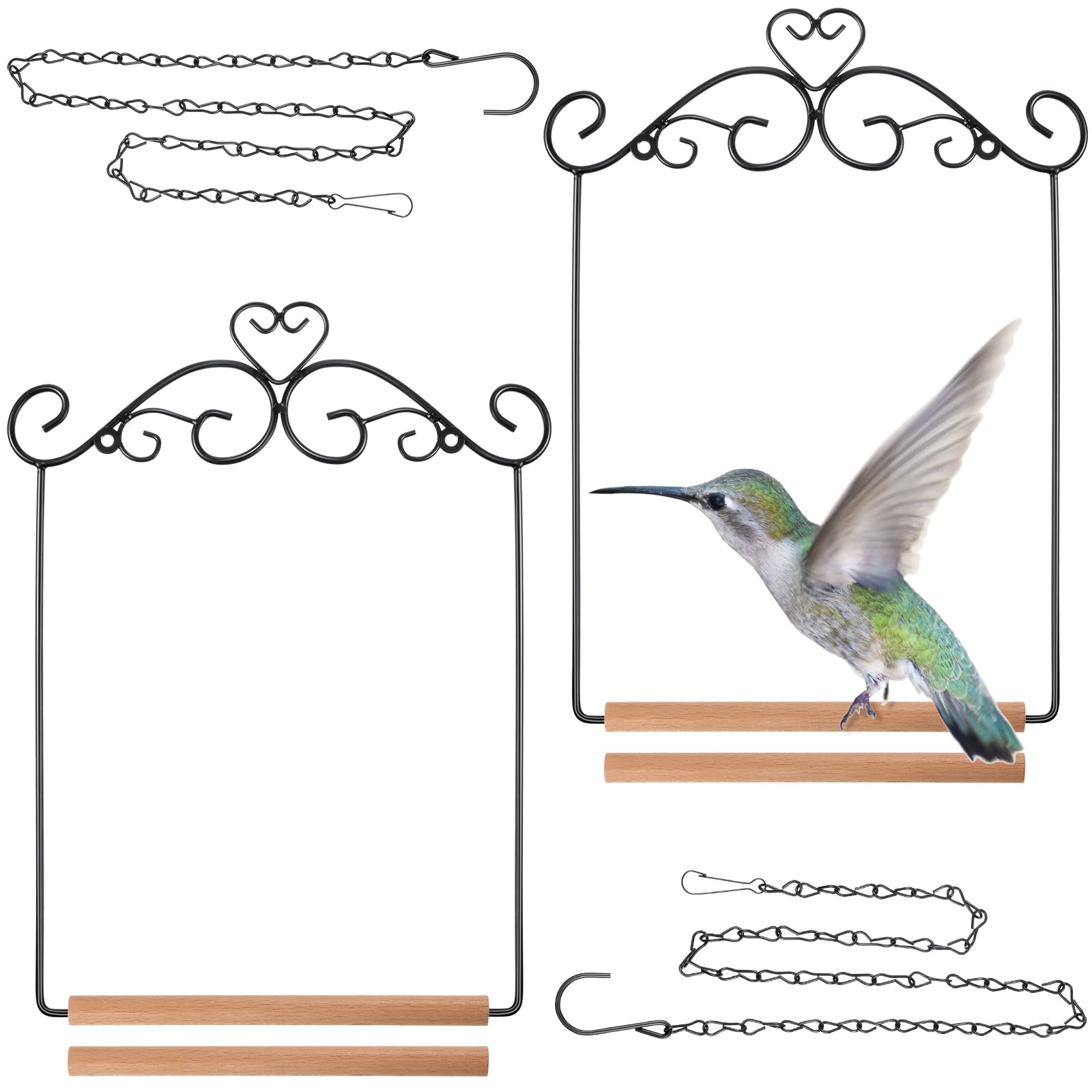 Hotop 2 Pcs Hummingbird Swings and Perches Metal Frame Bird Swing with 2 Replacement Wooden Dowel and 2 Hanging Chain for Outdoor Bird Feeders,|Pet Supplies