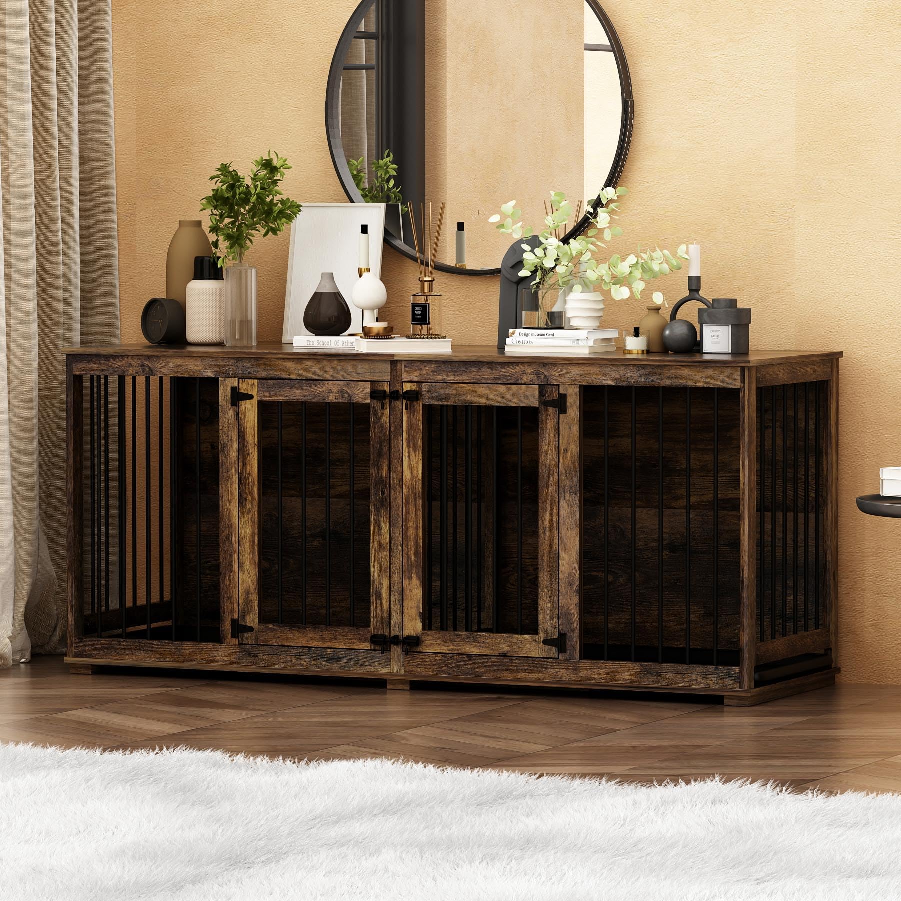 DAWNSPACES Large Funiture Style Dog Crate for 2 Dogs, 70" Wooden Dog Kennel Furniture with Removable Divider & 2 Trays, Indoor Heavy Duty Dog House w/|Pet Supplies