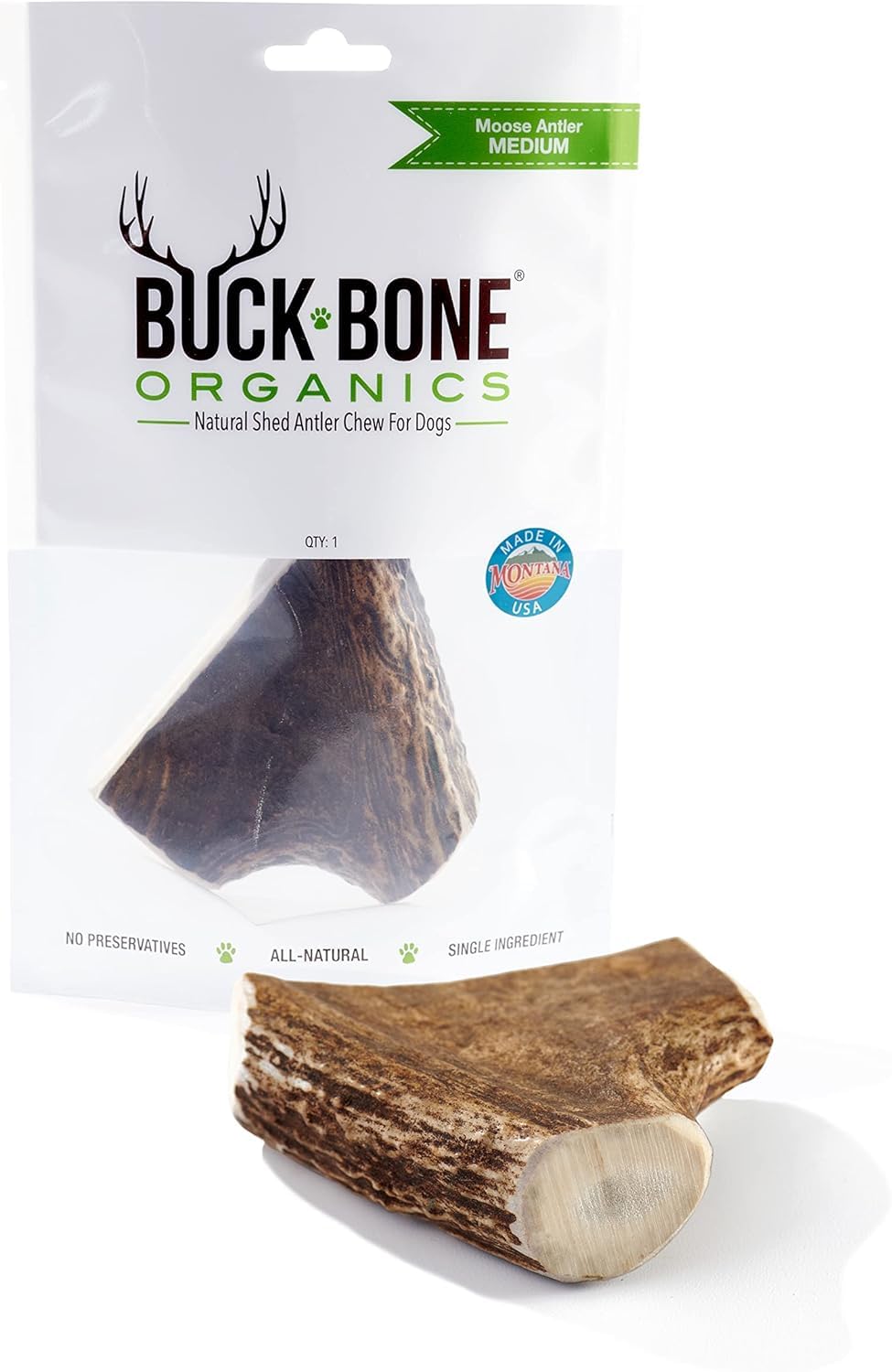 Buck Bone Organics Dog Chews, Moose Antlers for Dogs, Long Lasting Dog Bones for Aggressive Chewers, All Natural, No Preservatives, Wild Shed in The|Pet Supplies