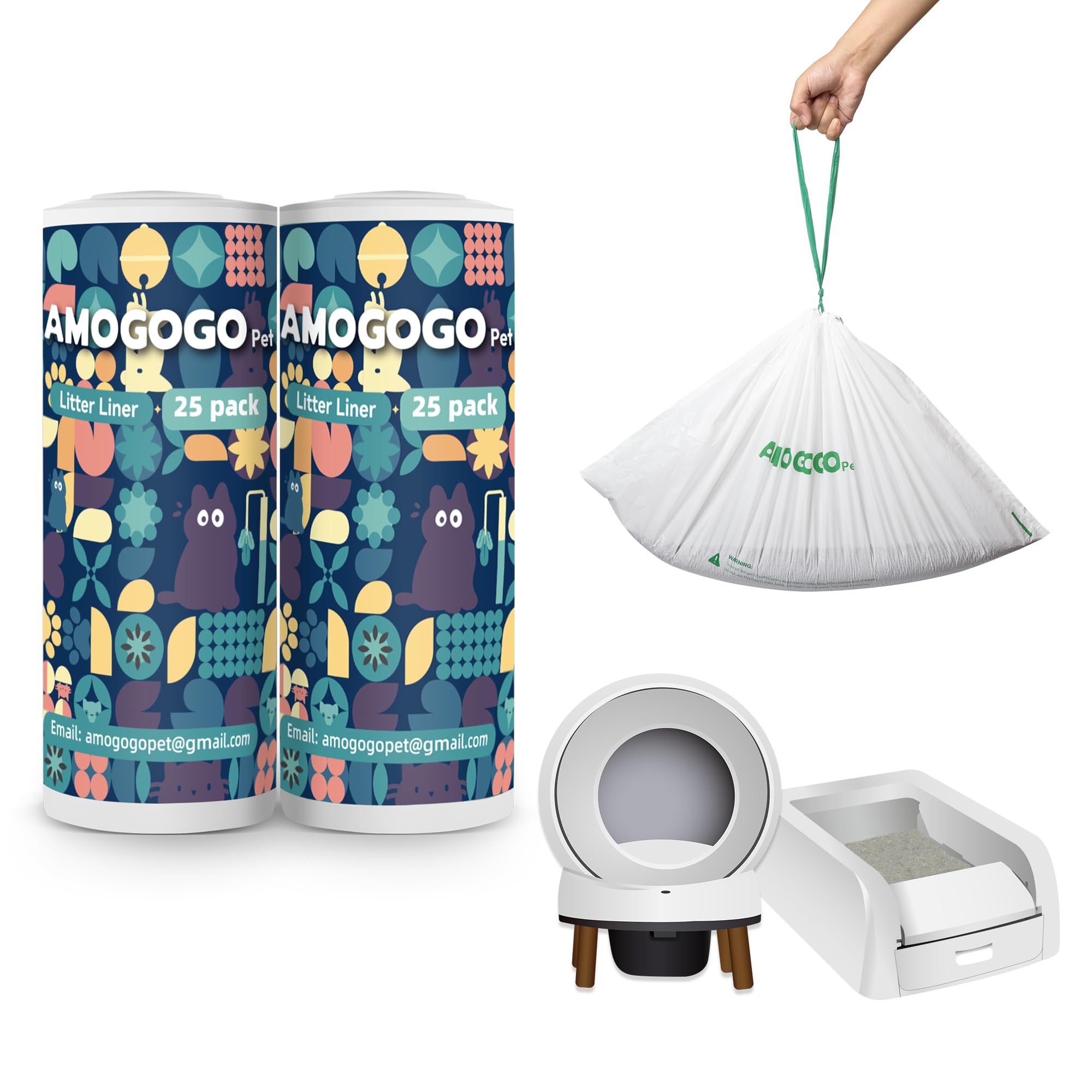 AMOGOGOPET 50 Pack Waste Bin Liners, Compatible with PetSafe Clumping & SmartSpin & KYKY S6 Automatic Litter Box, Large Capacity Litter Bags, Sturdy,|Pet Supplies