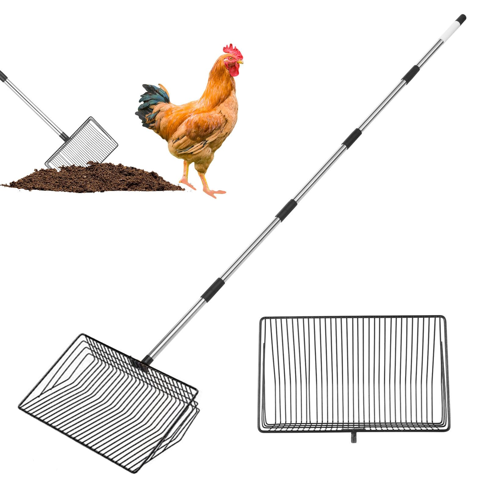 10-inch Heavy-Duty Metal Chicken Dung Scoop, 32 to 76" Long Chicken Coop Mucking Shovel with Stainless Steel Handle, 5-in-1 All-in-One Multifunctional|Pet Supplies