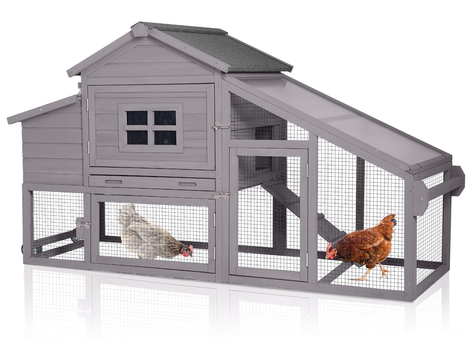 MEDEHOO Chicken Coop Expandable Chicken House for Outdoor with Wheels, Leakproof Pull-on Tray, Nesting Box, and UV-Resistant Roof Panel - Grey|Pet Supplies