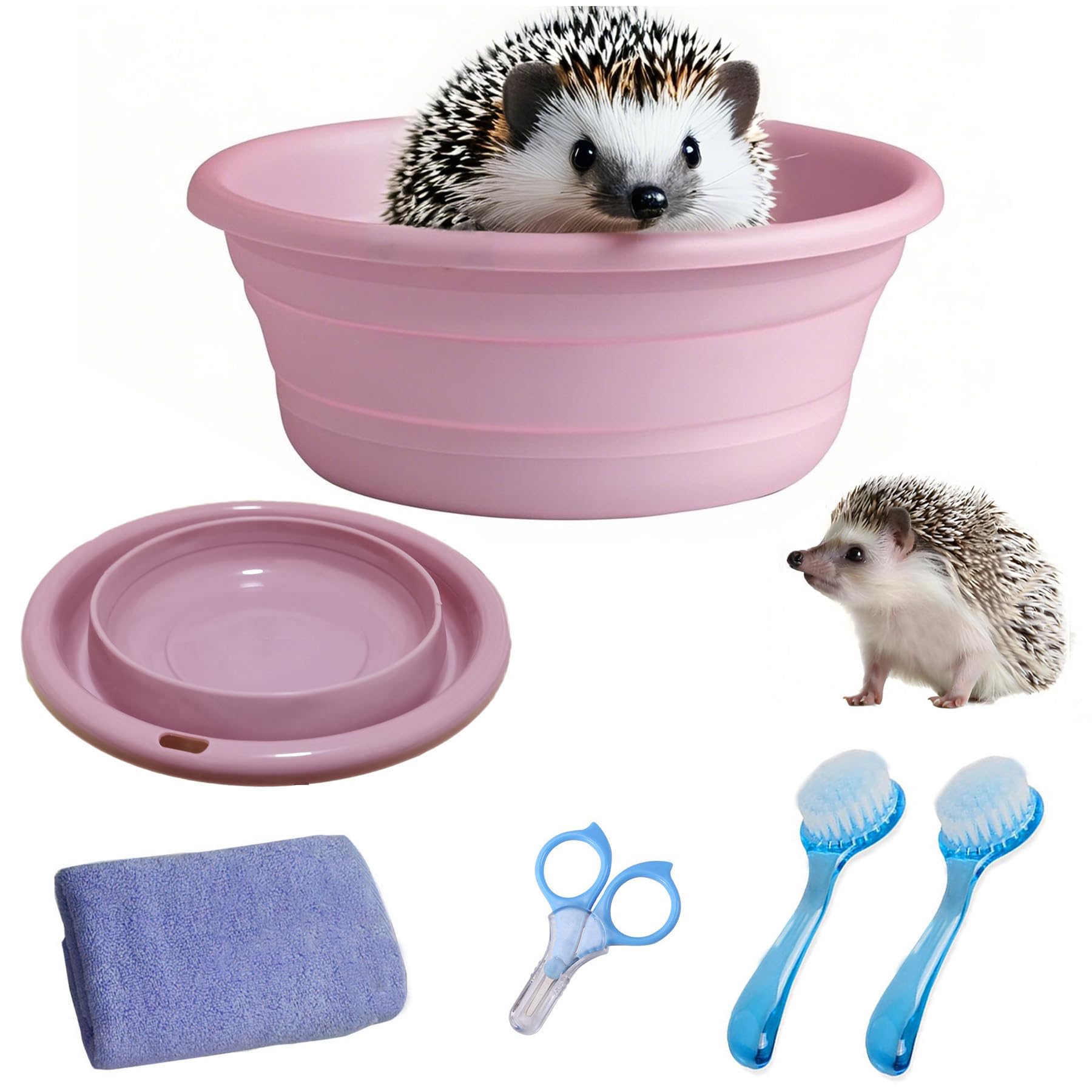 JSLZF Hedgehog Bath Supplies Grooming Kit: Foldable Bathtub, Nail Clippers, Bathing Brushes, Towel for Hedgehog Small Pets like Guinea Pigs|Pet Supplies