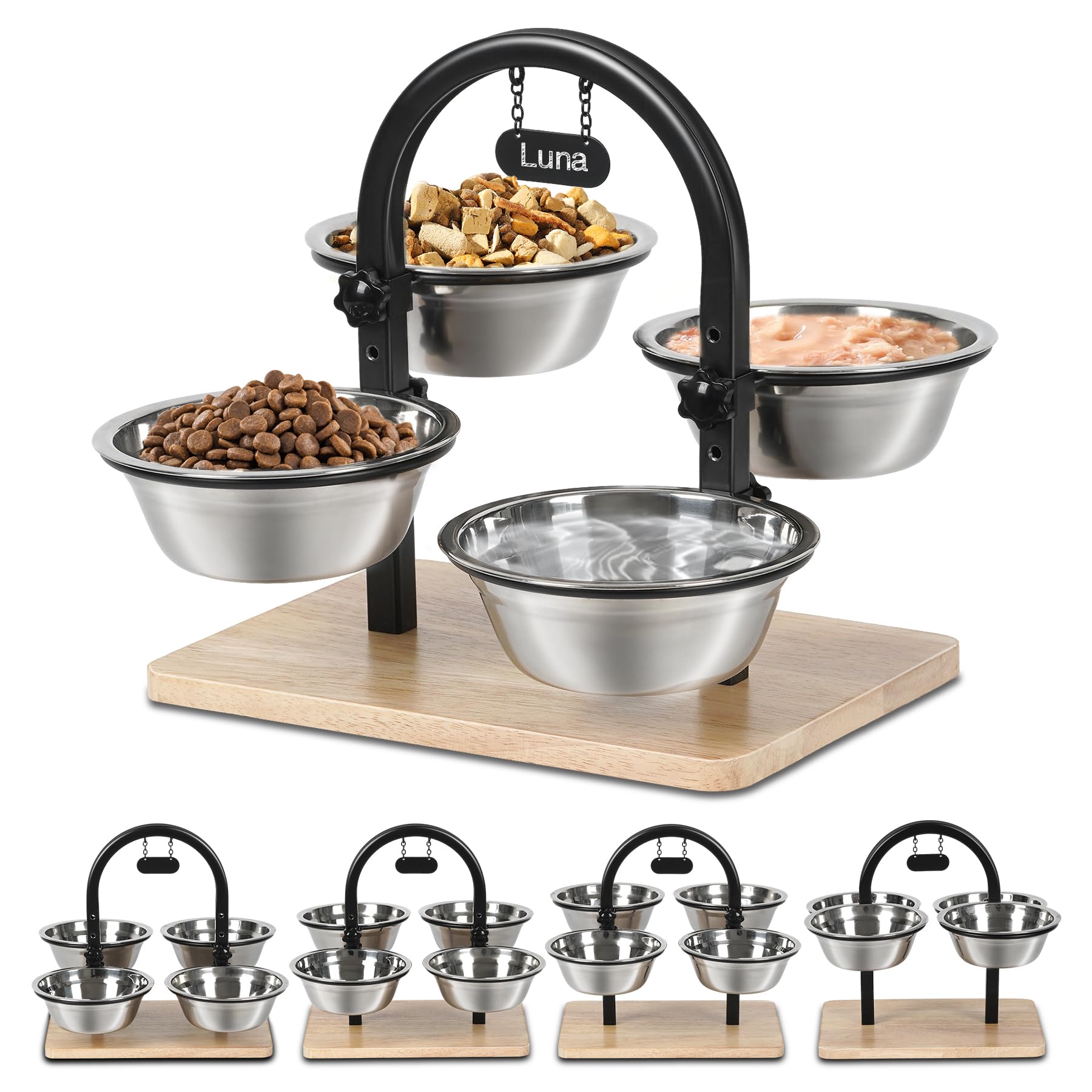 handrong Elevated Cat Bowls Elevated,4 Heights Raised Cat Food Bowl for Indoor Cats with 5 Steel Bowls for Kitten Puppy Small Dogs|Pet Supplies