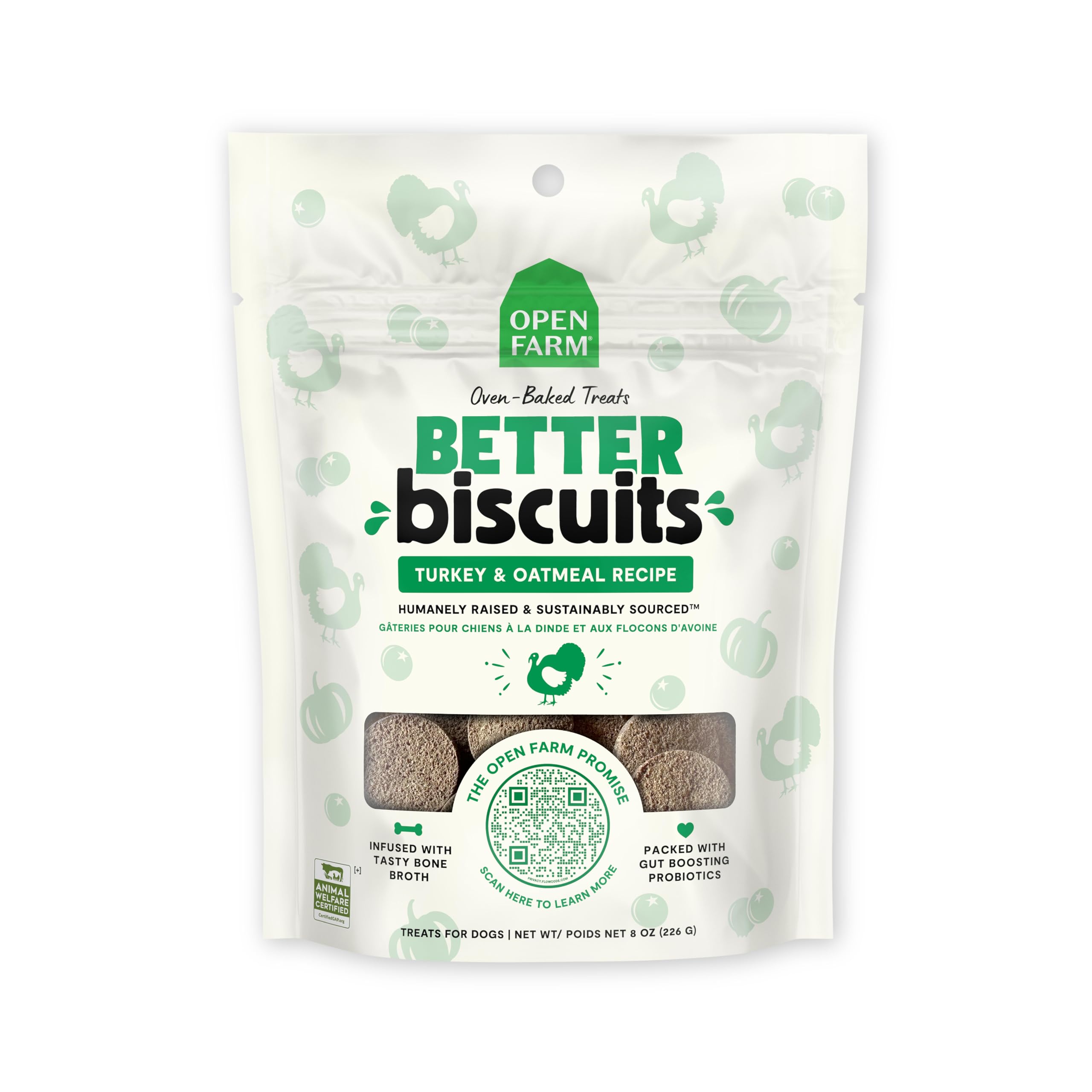 Open Farm Better Biscuits, Oven Baked Dog Treats with Probiotics, Turkey & Oatmeal Recipe, 8oz Pouch|Pet Supplies