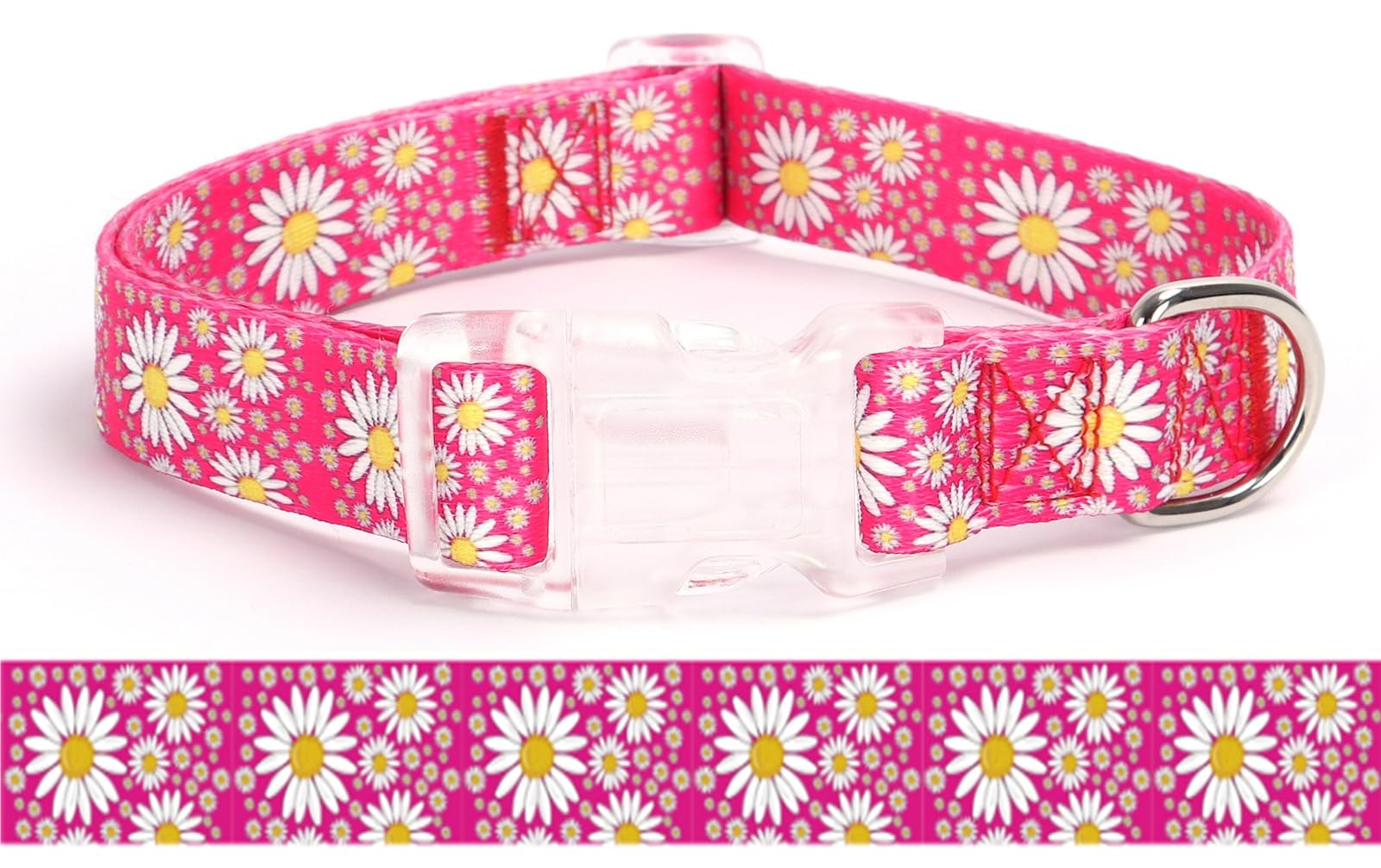 Pimaodog Girl Dog Collars with Daisy Patterns, Cute Pink Dog Collar for Female Dogs, Adjustable Soft Durable Pet Collars for Cat Puppy XS Small Medium|Pet Supplies