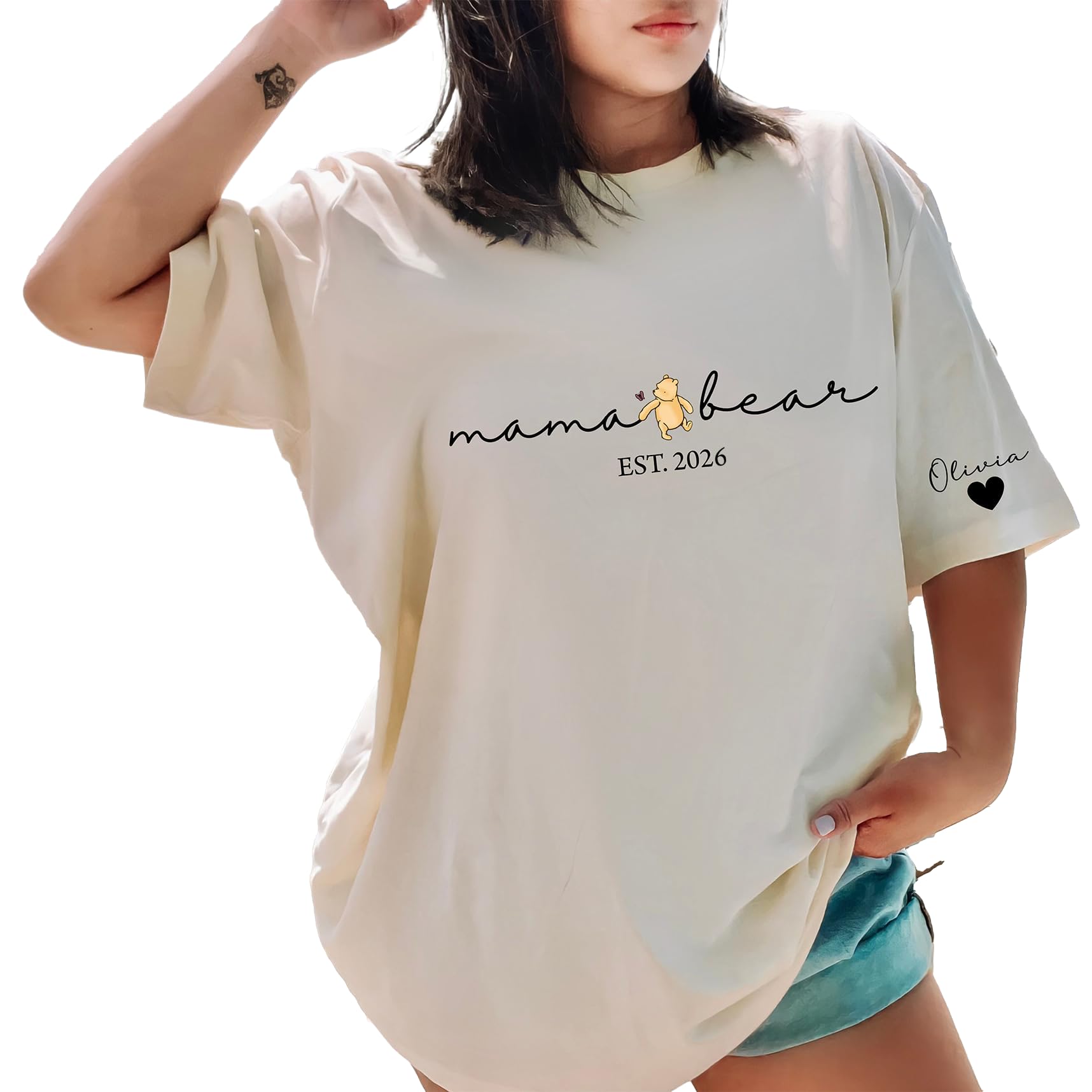 Custom Mama Bear Shirt with Kid Names on Sleeve Mama Bear Tshirt for Mamma Personalized Mom Shirt Mother’s Day T-shirt|others