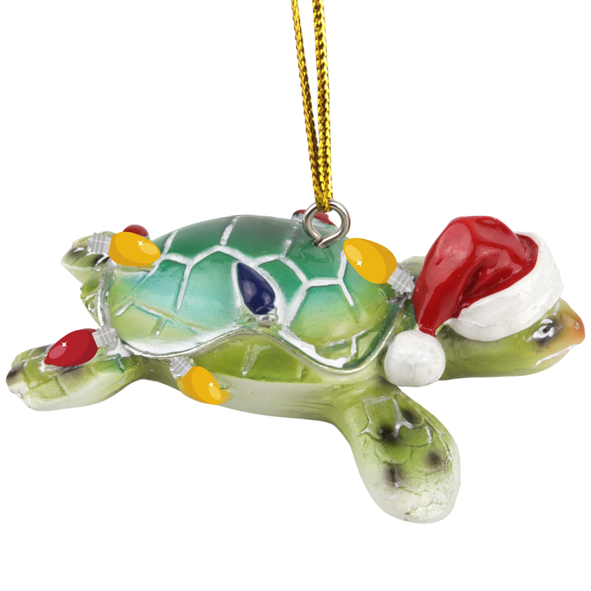Needzo Resin Sea Turtle with Santa Hat Ornament, Ocean Life Christmas Tree Decor, 3x2.25 Inches|Home & Garden