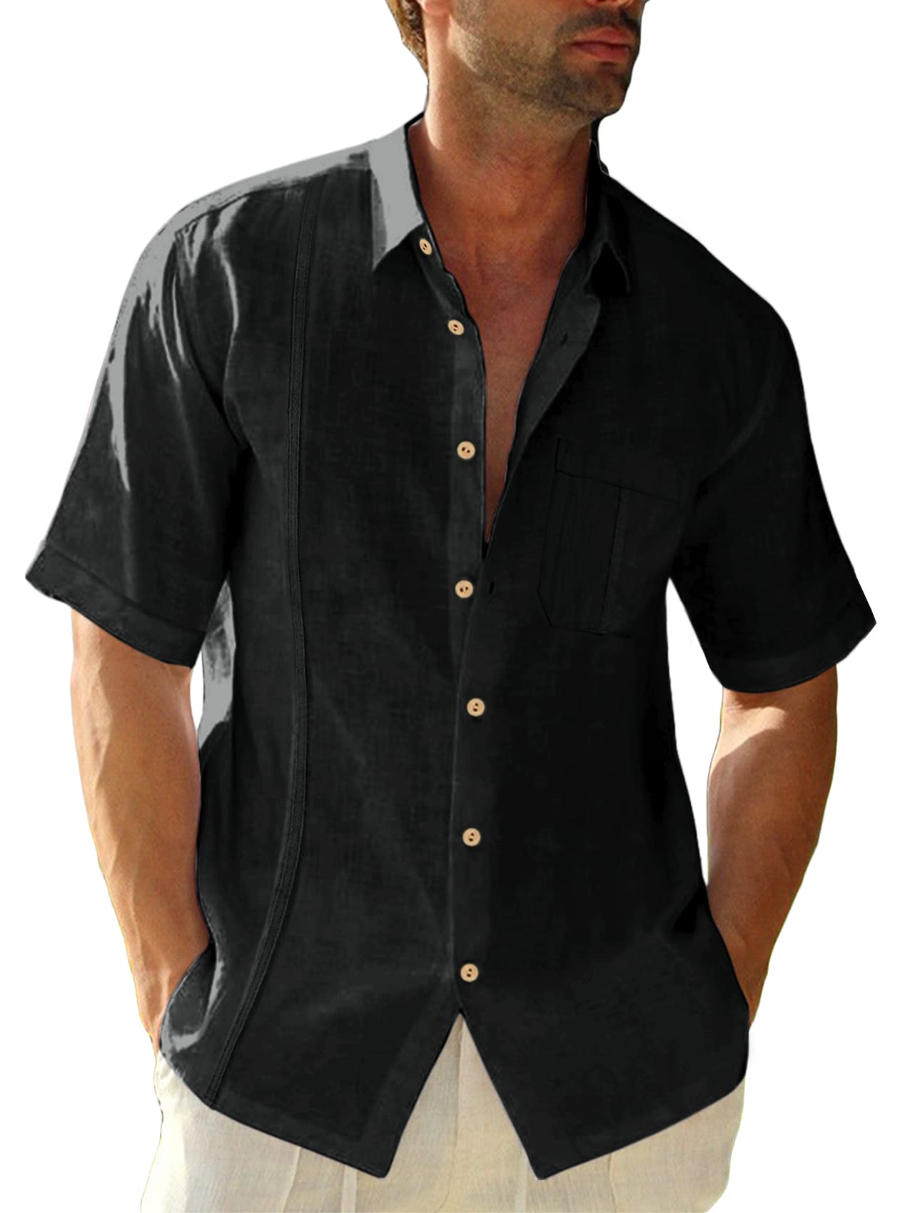 Mens Beach Linen Shirts Short Sleeve Cuban Button Down Casual Summer T Shirt Guayabera Hawaiian Tee Loose Fit Tops|Clothing