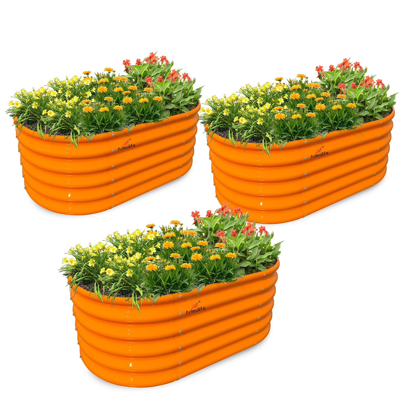A ANLEOLIFE Kids Mini Raised Garden Beds Outdoor (3-Pack)-40x24x18in Oval Round Galvanized Metal Planter Box for Planting Vegetables, Flowers, Fruits,|Lawn & Garden