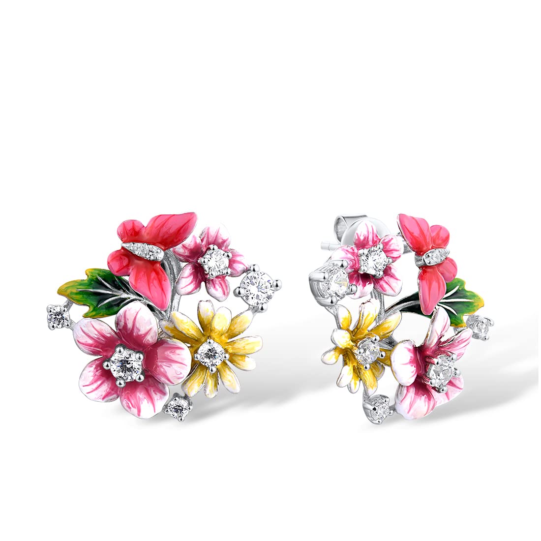 Santuzza Enamel Gemston Flower 925 Sterling Silvere Earrings|Jewelry