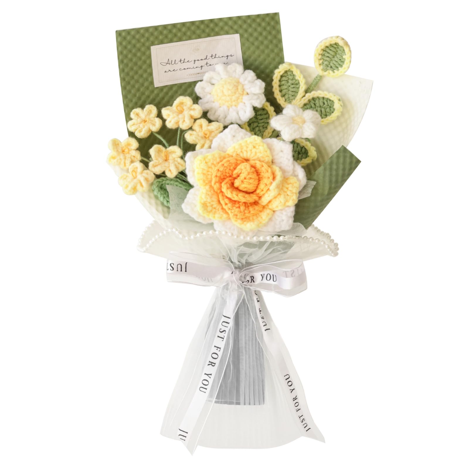 Piklado Hand-Woven Flower Bouquet Finished(1pcs) for Valentine's Day Girlfriend Birthday Gift Wedding Decoration Crochet Artificial Flower, Bouquet|Home & Garden