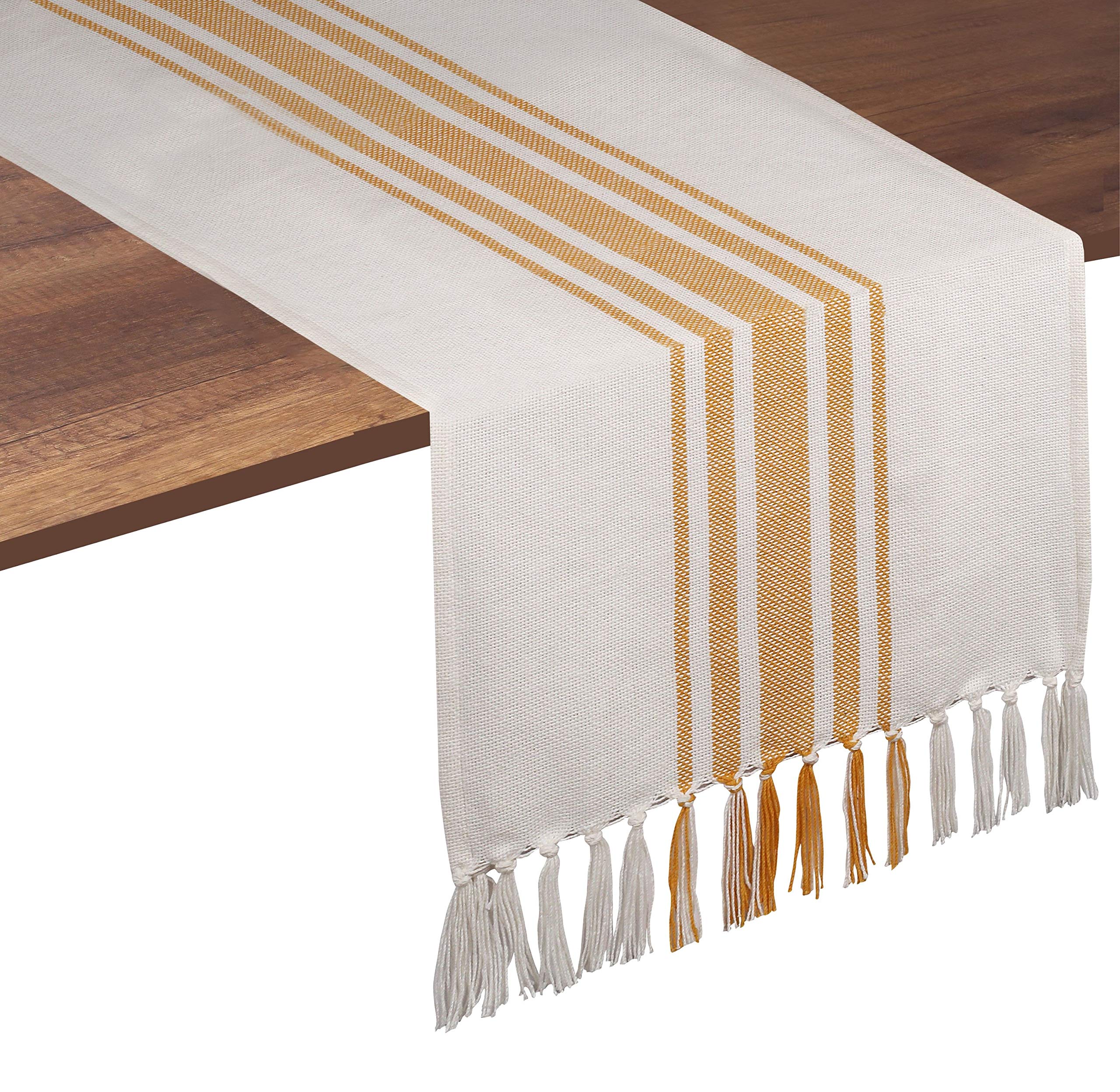 Native Fab Yellow Stripe Table Runner - 72 Inches Long Table Covers with Tassels - 100% Cotton, Soft, Non Slip Tablerunner for Dining, Kitchen,|Home & Garden