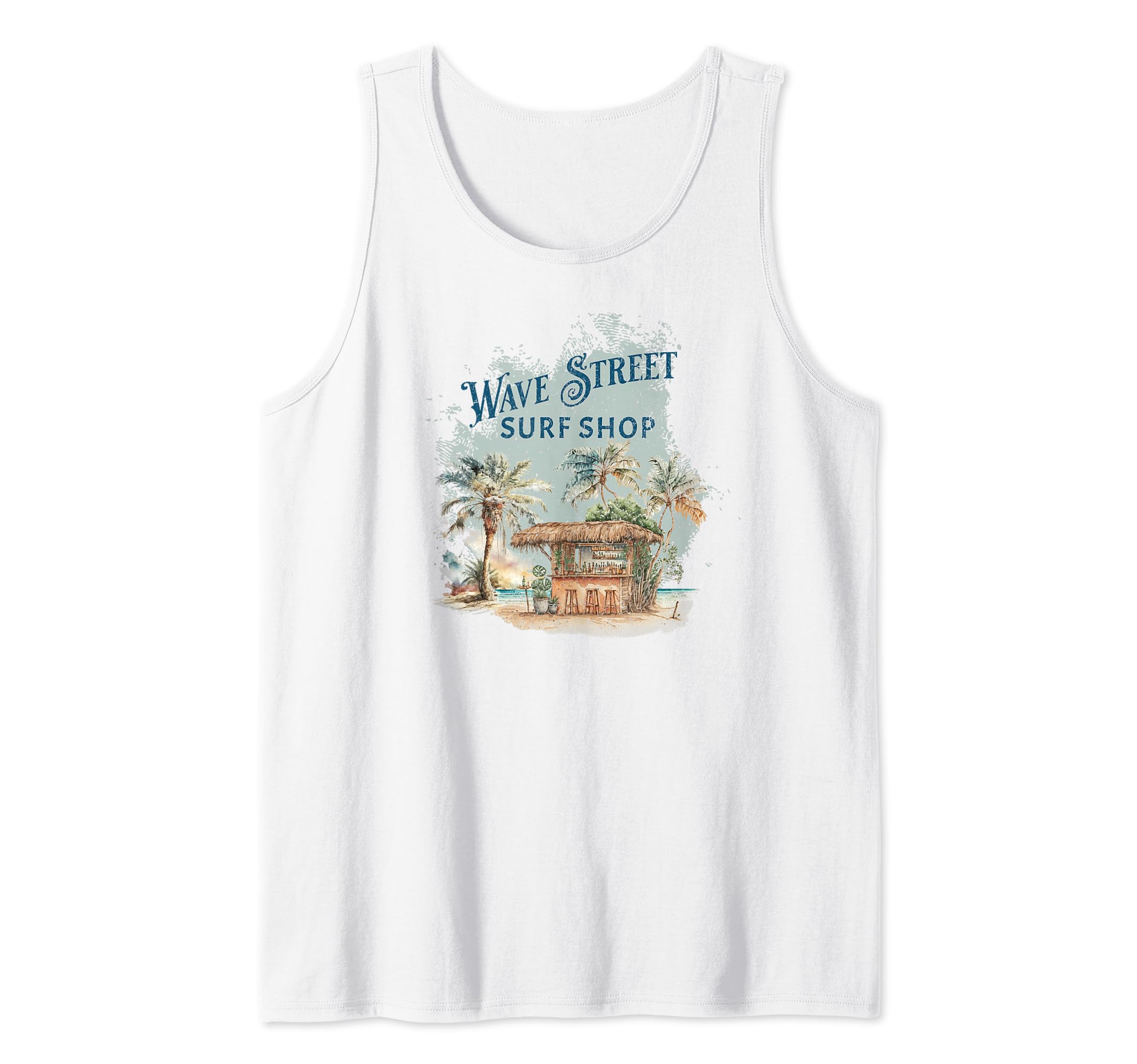 Wave Street Retro Vacation Beach Surfing Sunset Beach Hut Tank Top|Clothing