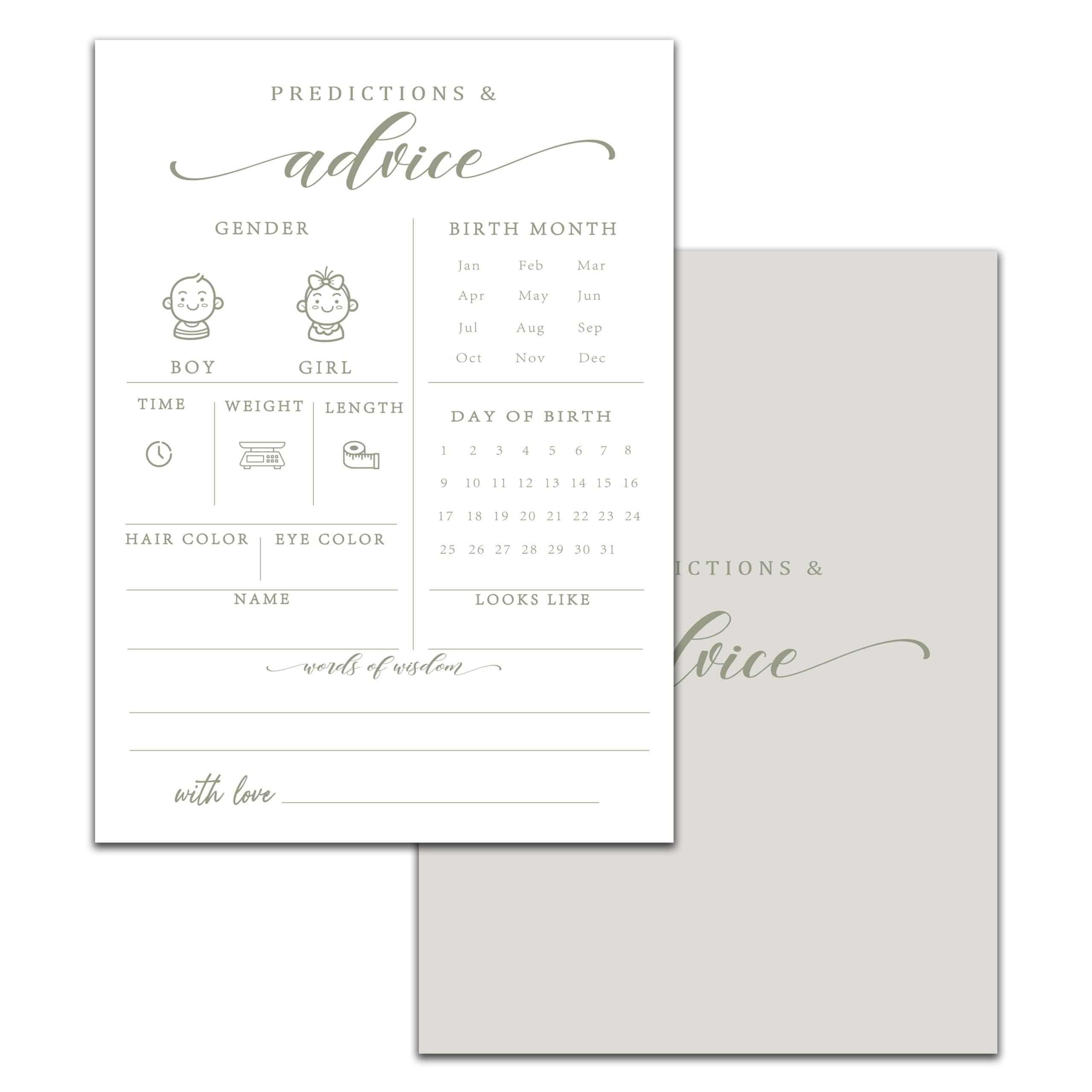 Baby Predictions and Advice Cards, 5" x 7" Minimalism Baby Shower Predictions Cards, Baby Shower Party Games & Activities Favors for Newparents - I05|Business & Industrial