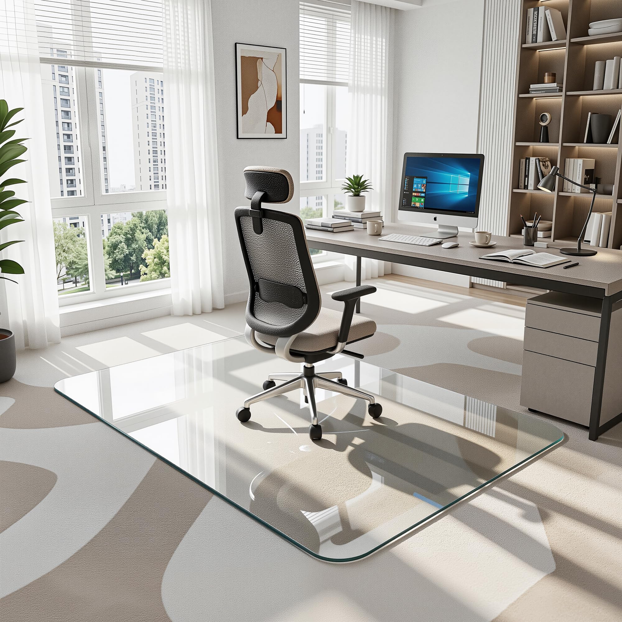 Antok Tempered Glass Chair Mat, 48"x72" Office Chair Mat for Carpet & Hardwood Floors, Heavy Duty 1/5" Desk Chair Mat for Smooth Rolling at Home or|Furniture
