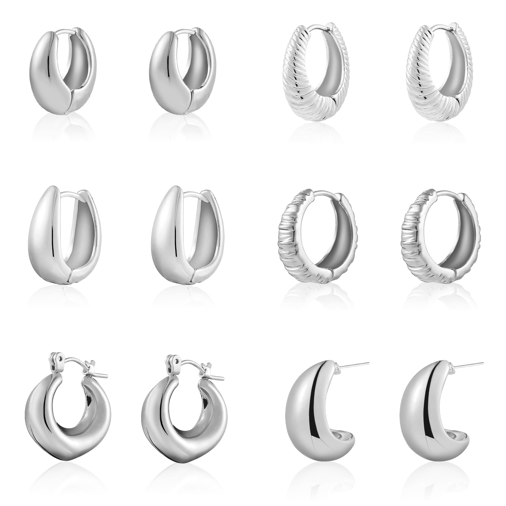 Wgoud 6 Pairs Gold Hoop Earrings Set for Women, 14K Gold Plated Hypoallergenic Lightweight Chunky Open Huggie Hoops Earrings Jewelry for Gifts.|Jewelry