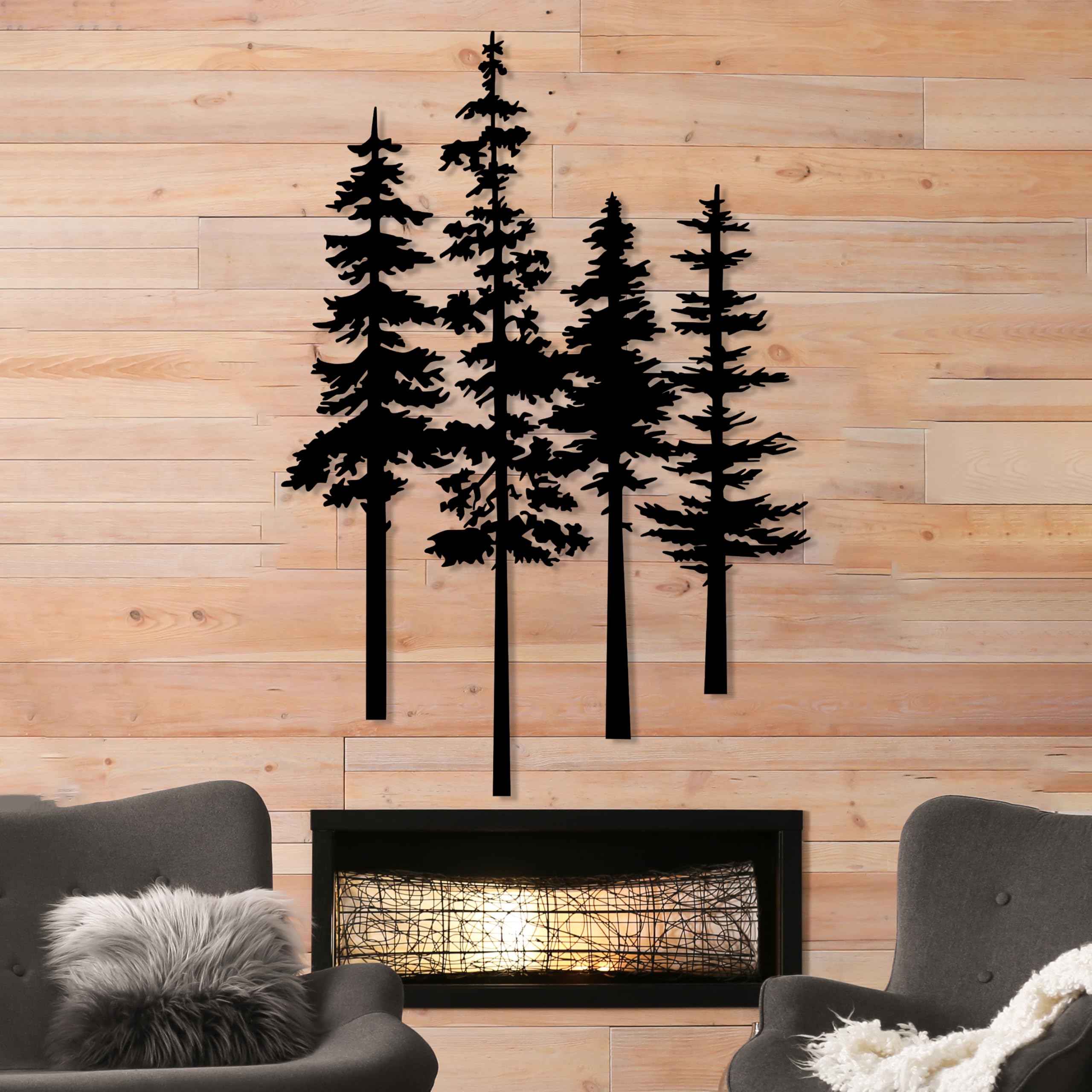 DecoSoul Pine Tree Metal Wall Art, Nature Lover Gift, Unique Farmhouse Decor, Forest Home Decor, Large Wall Art (Black-19.7x 13.7" / 50 x 35 cm)|Home & Garden