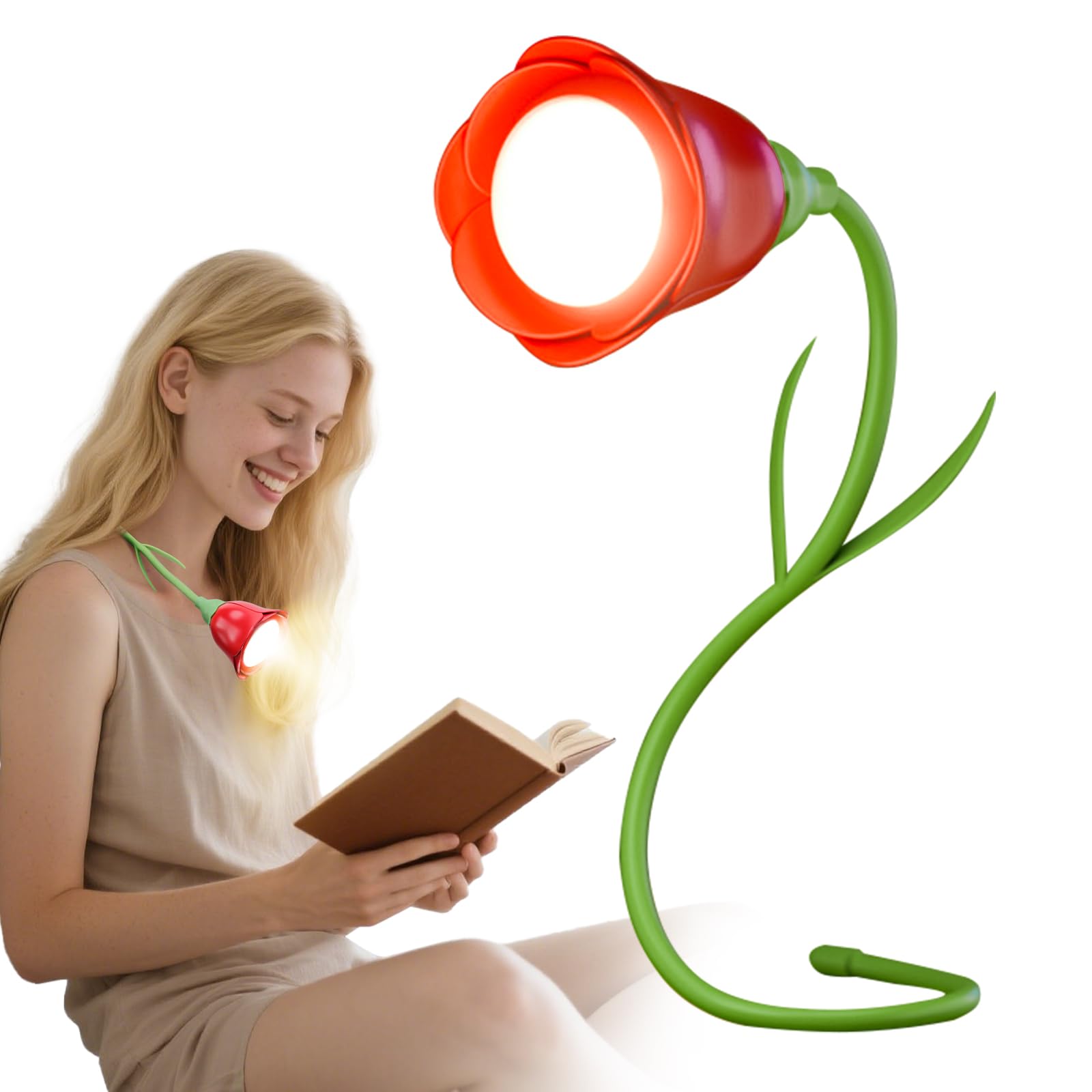 Rose Neck Reading Light - USB-C Rechargeable Knitting Light, 3-Colour Infinitely Dimming Small Night Light, Flower Lamp for Bed Travel Room Decor,|Home & Garden