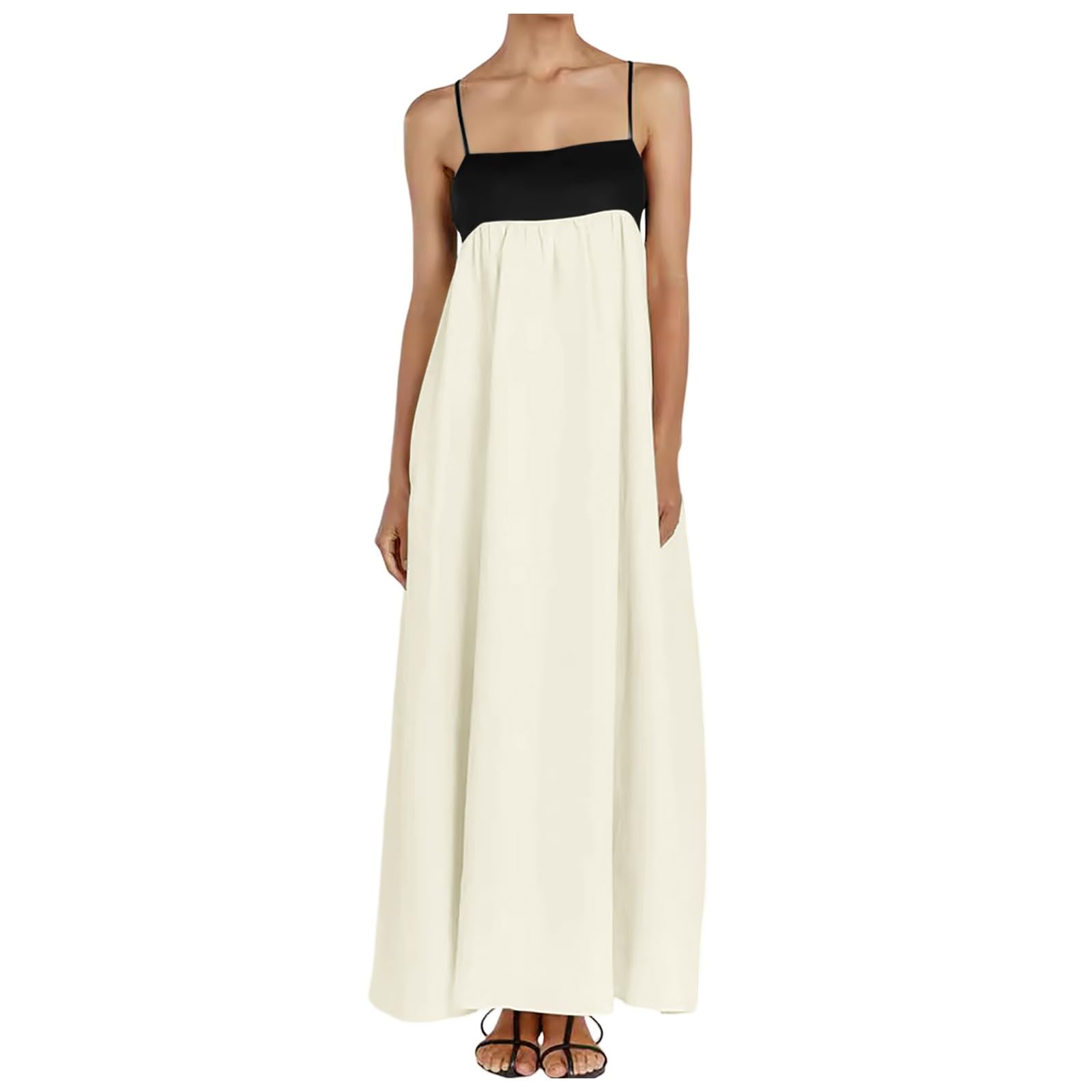 Linen Dresses for Women 2025 Contrast Trim Spaghetti Straps Summer Outfits Sleeveless Backless Long Dresses Travel Vacation|Clothing