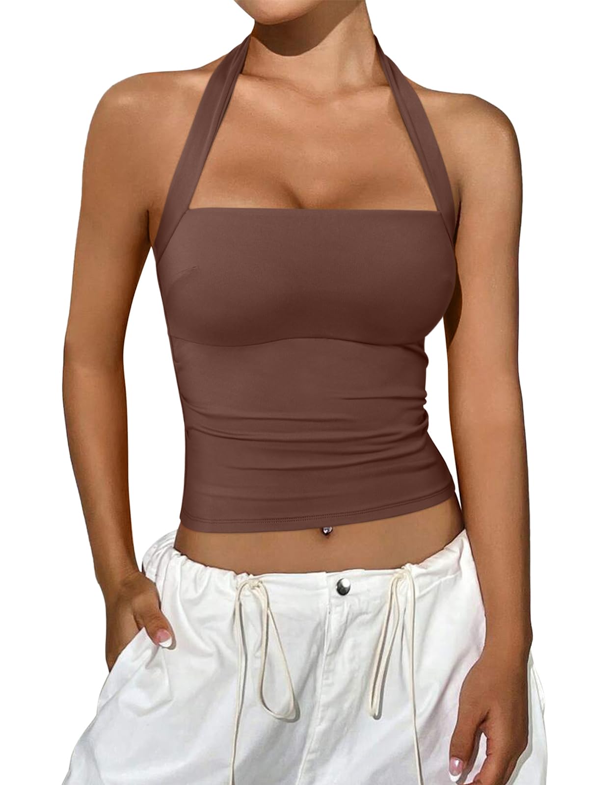 REORIA Halter Tops for Women Summer Sleeveless Going Out Outfits Y2K Trendy Cute Crop Tank Top Clothes|Clothing