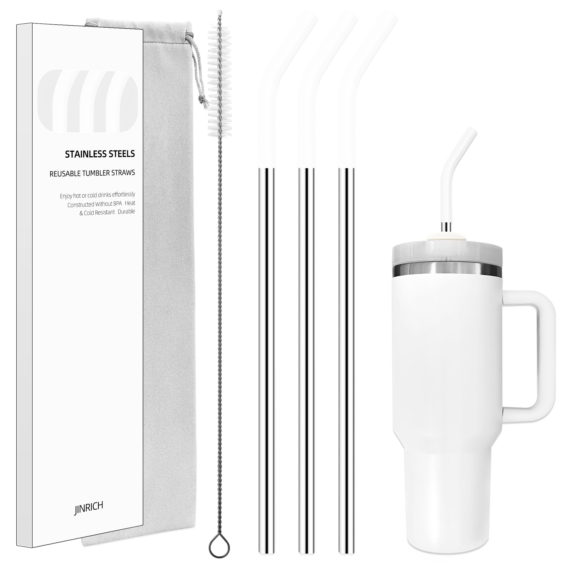 JINRICH Set of 3 Stainless Steel Straws for 40 Oz Tumbler,For Stanley 40 Oz Tumbler, Reusable Metal Straw with 6 Silicone Tips and 1 Straw Cleaning|Kitchen & Dining