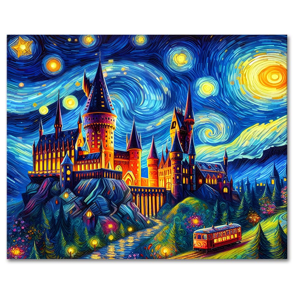 TUMOVO DIY Paint by Numbers Kit for Adults Magic Castle Paint by Number Kits on Canvas Starry Sky Paint by Number for Adults with Brushes Art Crafts|Home & Garden